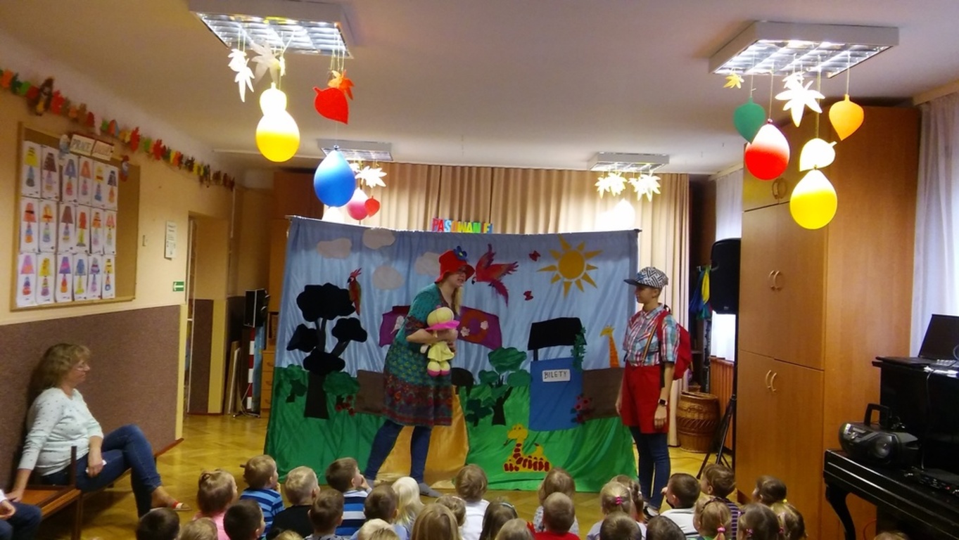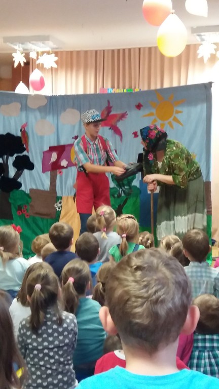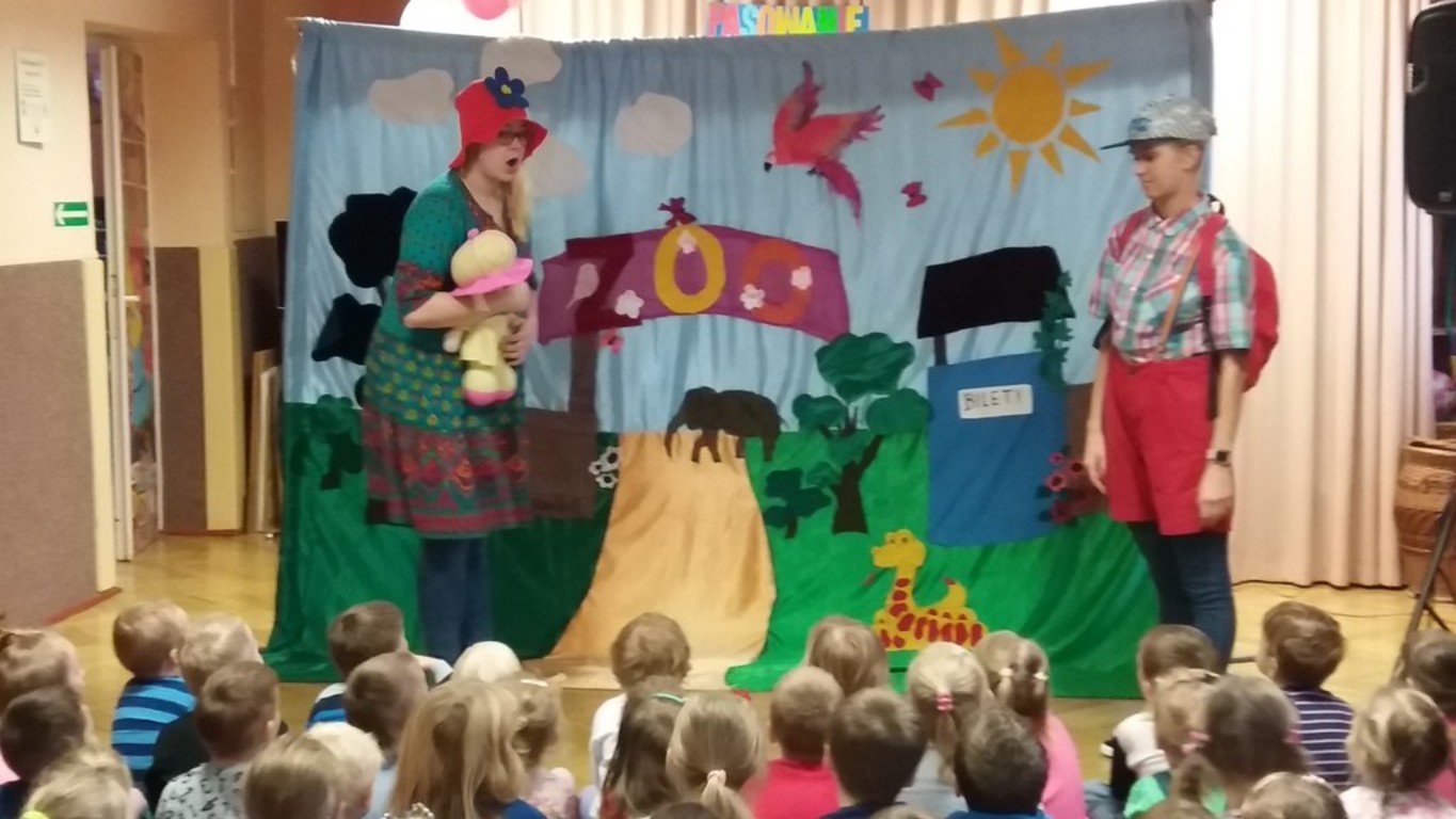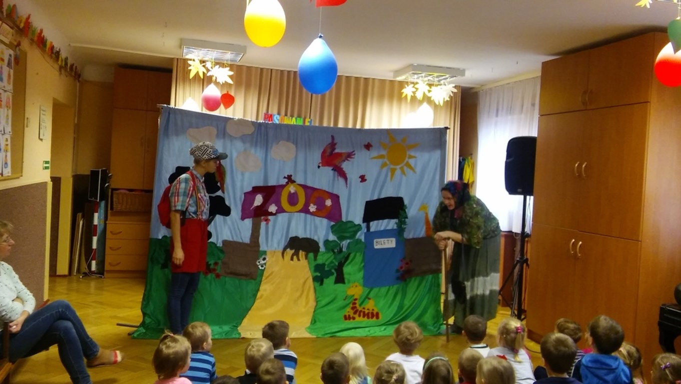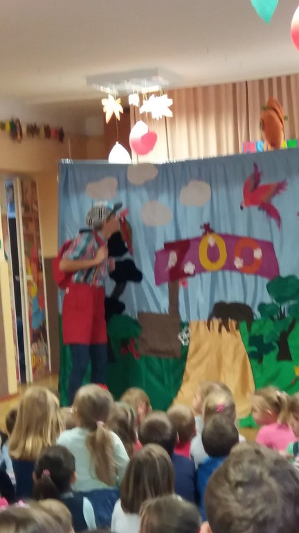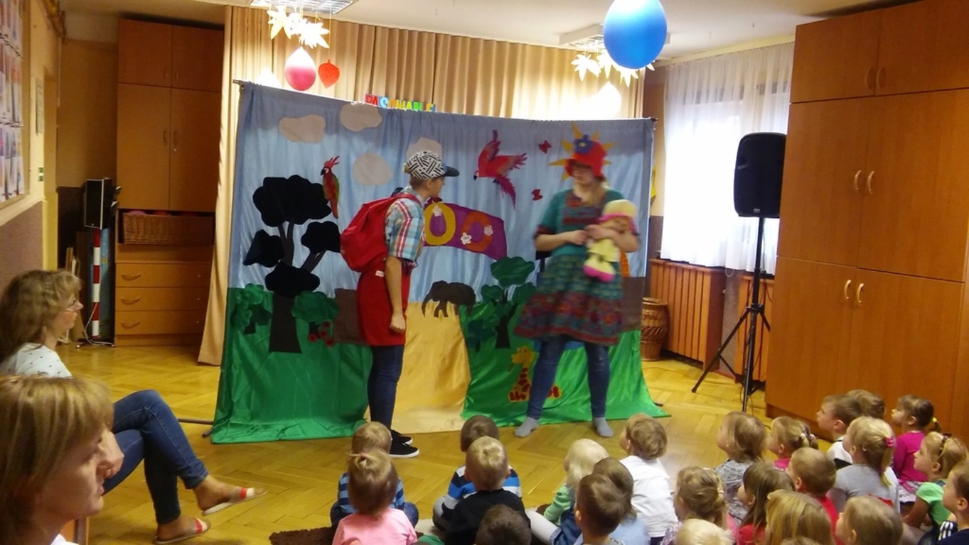 13 listopada gościliśmy w naszym przedszkolu Teatr Arena z Białegostoku. Aktorzy wystąpili w przedstawieniu pt.: „Najlepszy rachunek dobro i szacunek". W sposób żartobliwy, ale bardzo wymowny aktorzy przedstawili zasady właściwego zachowania wobec innych, nie tylko ludzi, ale także i zwierząt. Prezentując perypetie głównego bohatera o imieniu Staś w ZOO, zwrócili uwagę na stosunek dzieci i młodzieży do zwierząt i ludzi, angażując przy tym przedszkolaków. Jak większość bajek, tak i ta, miała dobre zakończenie, mianowicie główny bohater zrozumiał, że każdy żart ma swoje granice i że nikomu nie wolno sprawiać przykrości a szacunek do drugiego człowieka, bez względu na wiek jest podstawową wartością.