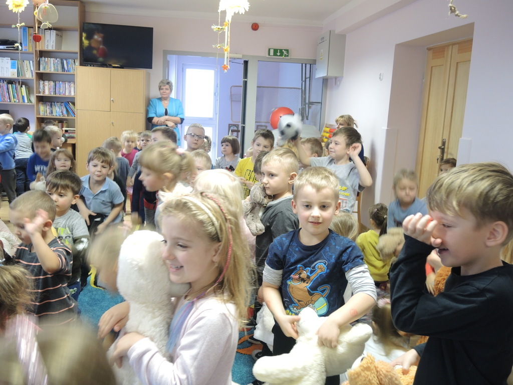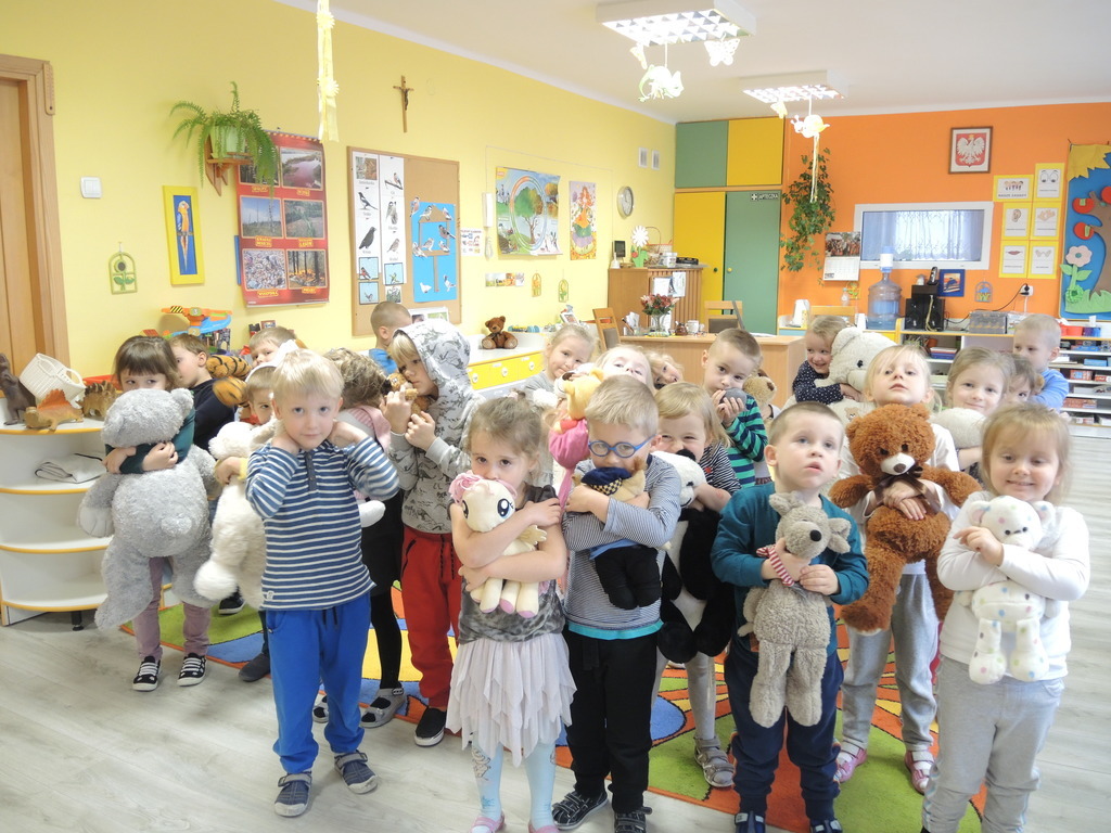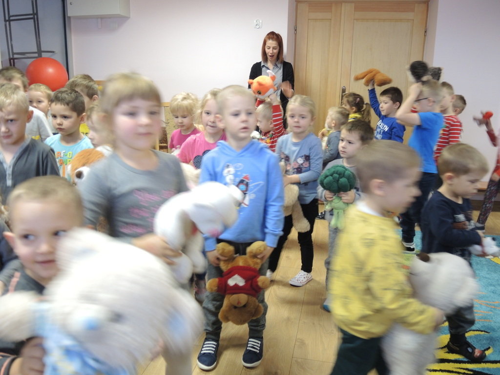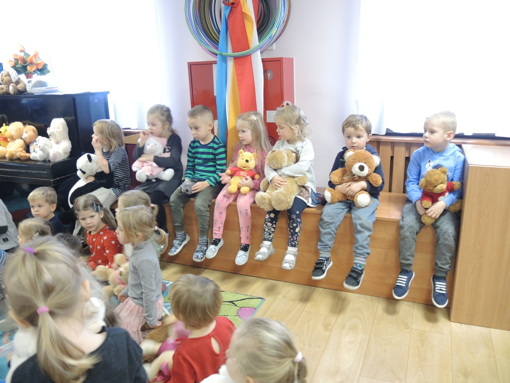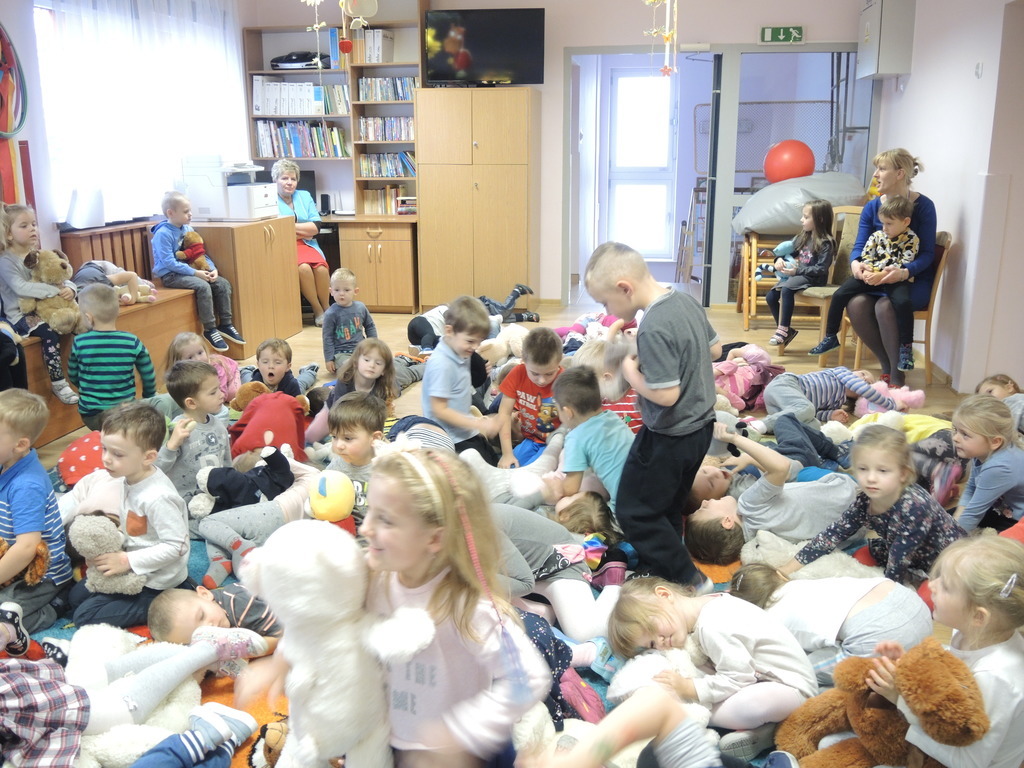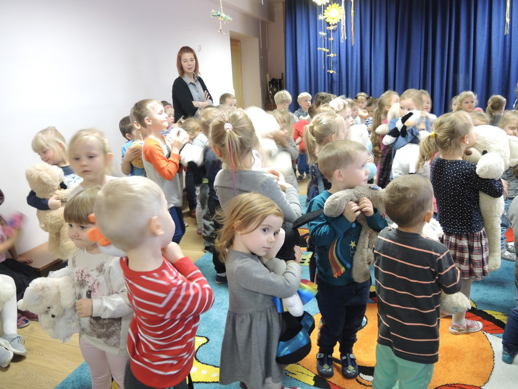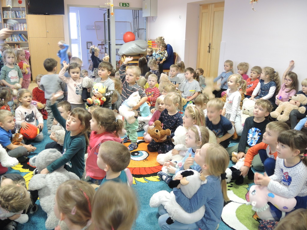 Jak co roku 25 listopada wszystkie misie na całym świecie obchodzą swoje święto. Tego dnia wszystkie przedszkolaki przyszły ze swoimi ulubionymi i kochanymi pluszakami. Naszą uroczystość rozpoczęliśmy od przywitania dzieci i ich misiów oraz wspólnego zaśpiewania piosenki „ Jestem niedźwiadek” ilustrowanej ruchem. Następnie bawiliśmy się przy misiowych przebojach, takich jak „Pluszowy miś”, „Jadą, jadą misie” czy „ Miś brązowy i miś biały.” Były zabawy ruchowe i gimnastyka z misiami, quizy i zgadywanki. Dzieci poznały również historię misiowego święta , który od ponad 100 lat jest ich ulubieńcem.