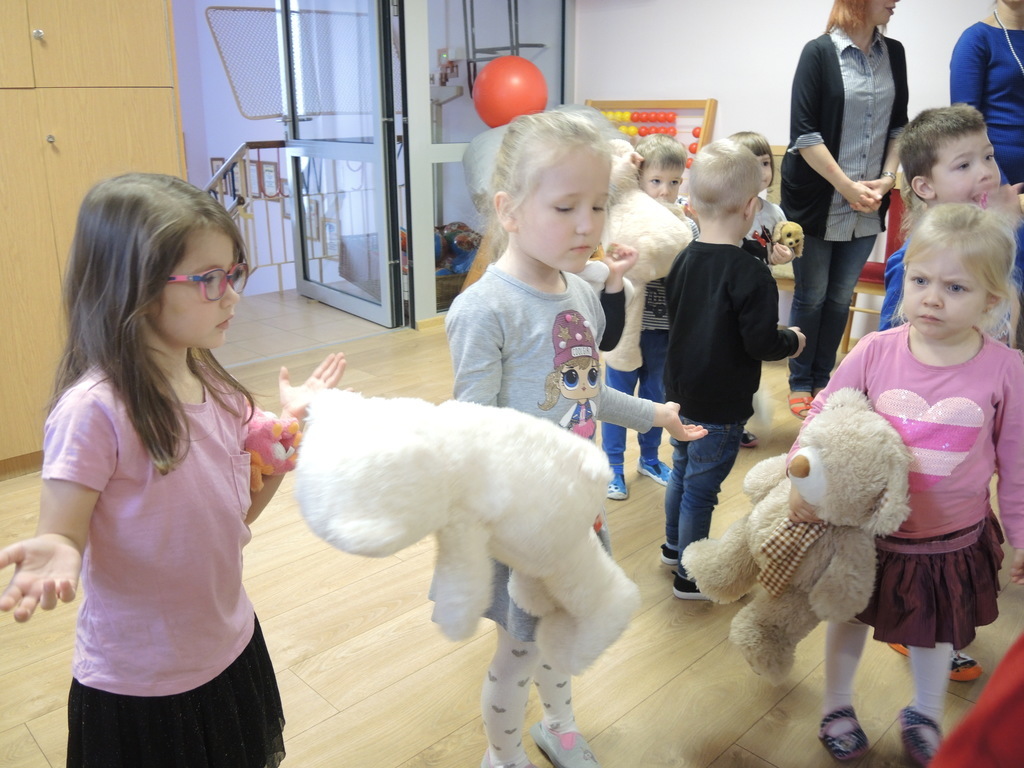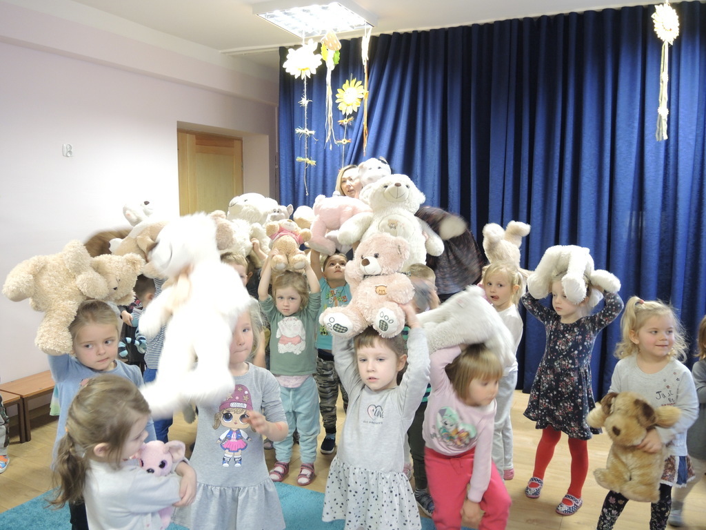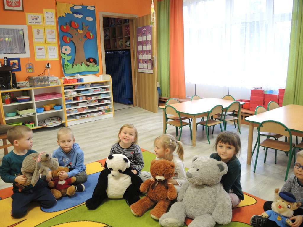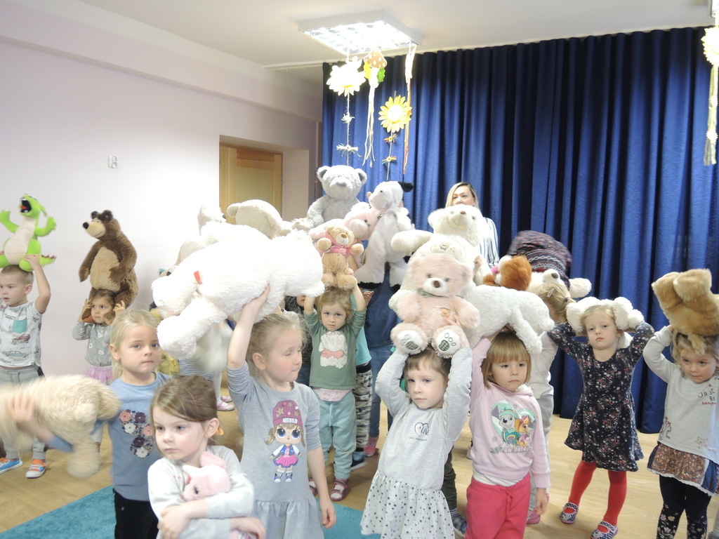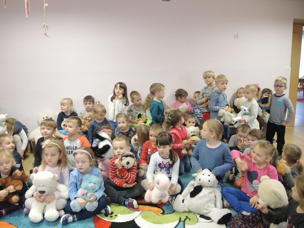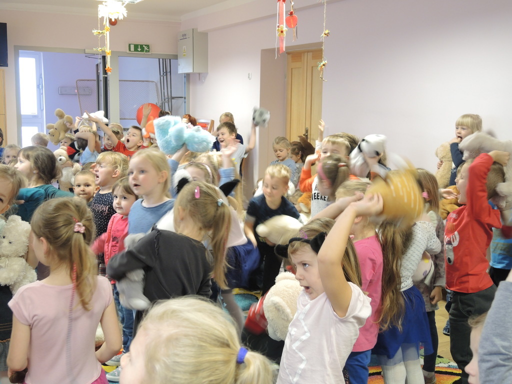 Jak co roku 25 listopada wszystkie misie na całym świecie obchodzą swoje święto. Tego dnia wszystkie przedszkolaki przyszły ze swoimi ulubionymi i kochanymi pluszakami. Naszą uroczystość rozpoczęliśmy od przywitania dzieci i ich misiów oraz wspólnego zaśpiewania piosenki „ Jestem niedźwiadek” ilustrowanej ruchem. Następnie bawiliśmy się przy misiowych przebojach, takich jak „Pluszowy miś”, „Jadą, jadą misie” czy „ Miś brązowy i miś biały.” Były zabawy ruchowe i gimnastyka z misiami, quizy i zgadywanki. Dzieci poznały również historię misiowego święta , który od ponad 100 lat jest ich ulubieńcem.