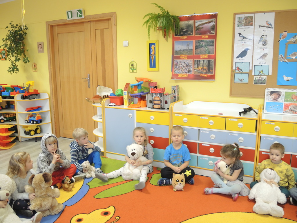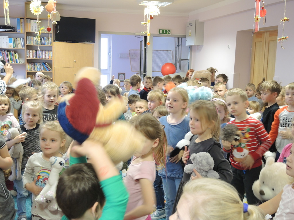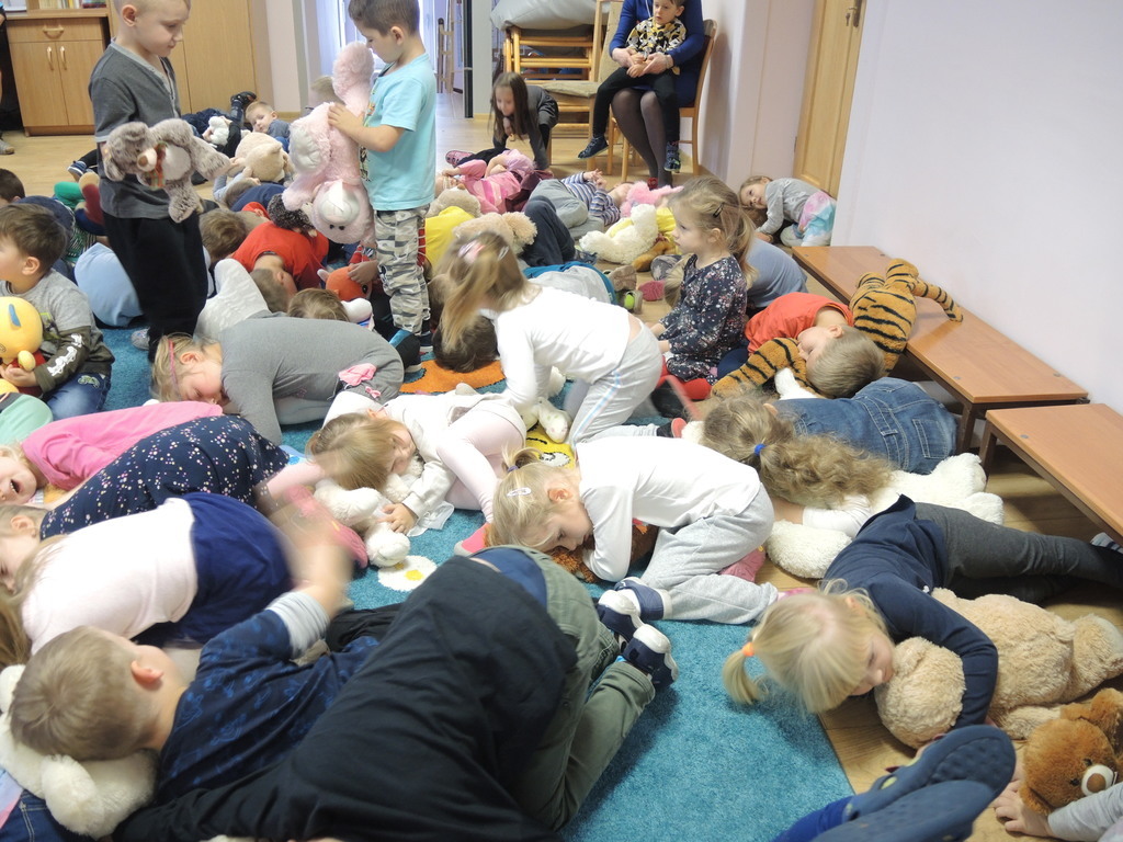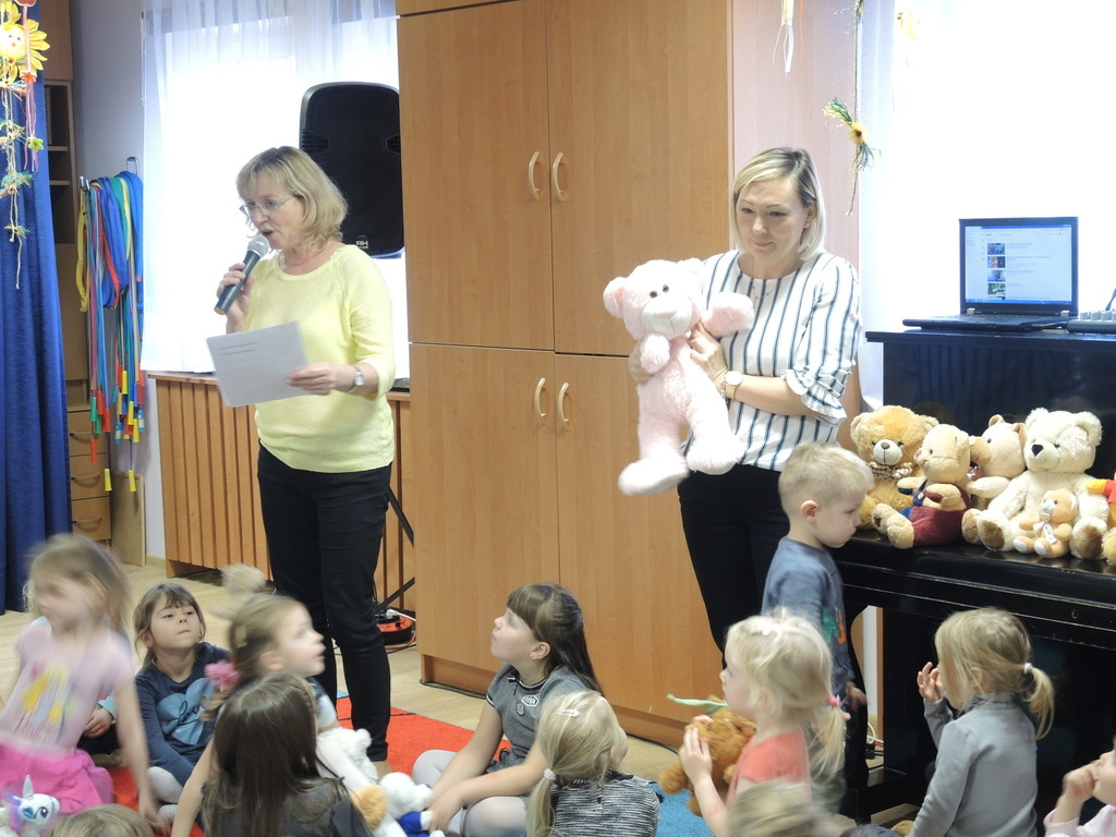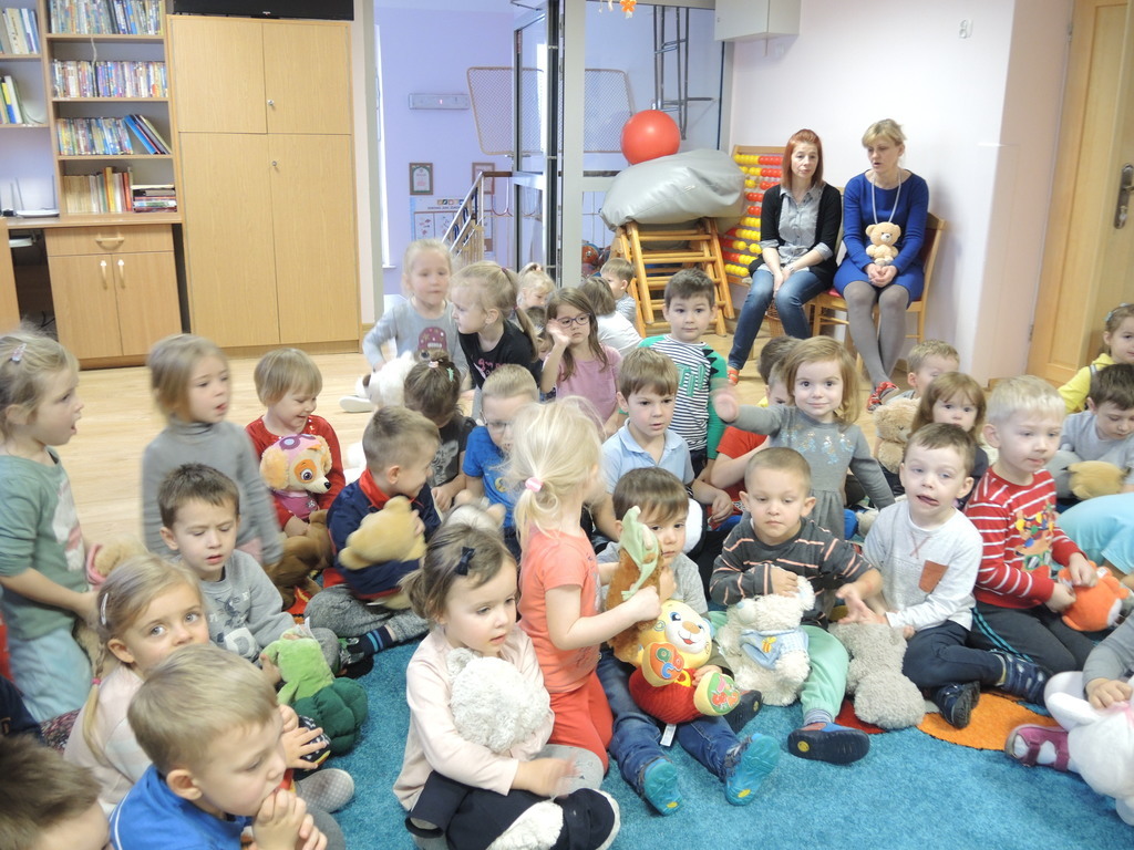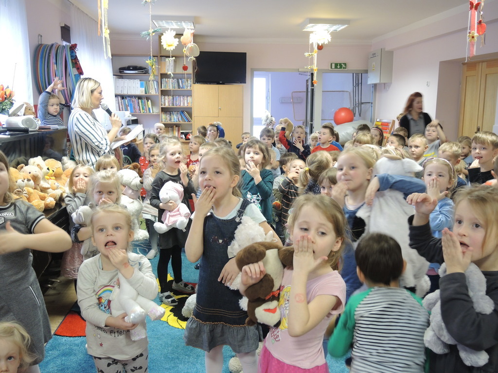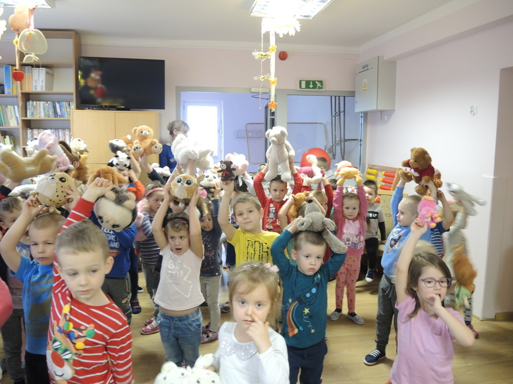 Jak co roku 25 listopada wszystkie misie na całym świecie obchodzą swoje święto. Tego dnia wszystkie przedszkolaki przyszły ze swoimi ulubionymi i kochanymi pluszakami. Naszą uroczystość rozpoczęliśmy od przywitania dzieci i ich misiów oraz wspólnego zaśpiewania piosenki „ Jestem niedźwiadek” ilustrowanej ruchem. Następnie bawiliśmy się przy misiowych przebojach, takich jak „Pluszowy miś”, „Jadą, jadą misie” czy „ Miś brązowy i miś biały.” Były zabawy ruchowe i gimnastyka z misiami, quizy i zgadywanki. Dzieci poznały również historię misiowego święta , który od ponad 100 lat jest ich ulubieńcem.