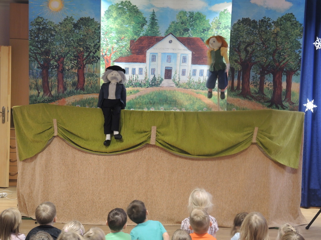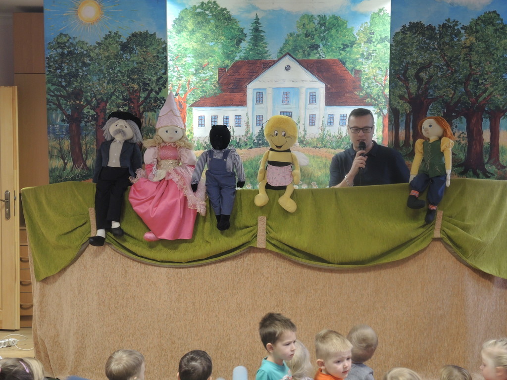 4 grudnia w naszym Przedszkolu gościliśmy teatr lalek z Nowego Sącza. Aktorzy zaprezentowali sztukę pt. "Gucio zaczarowany". Opowiadała ona historię leniwego chłopca, który za sprawą wróżki został przemieniony w muchę, by nauczyć się szacunku do pracy i innych ludzi. W nowym wcieleniu spotkał w pięknym, malowniczym ogrodzie: kreta, dwa wróble, dwa robaki ziemne oraz pszczółkę. Odkrył, że wszystkie te stworzenia ciężko pracują wykonując wiele pożytecznych zadań. Pod wpływem tych doświadczeń Gucio zrozumiał, że musi się zmienić dlatego wróżka odmieniła go w chłopca, który obiecał uczyć się oraz pomagać innym.