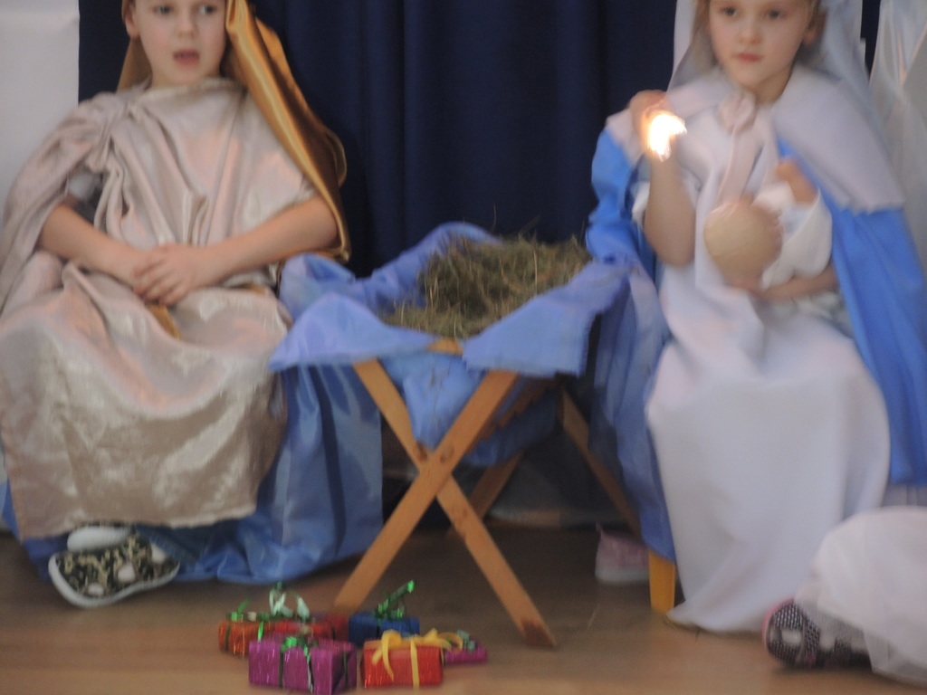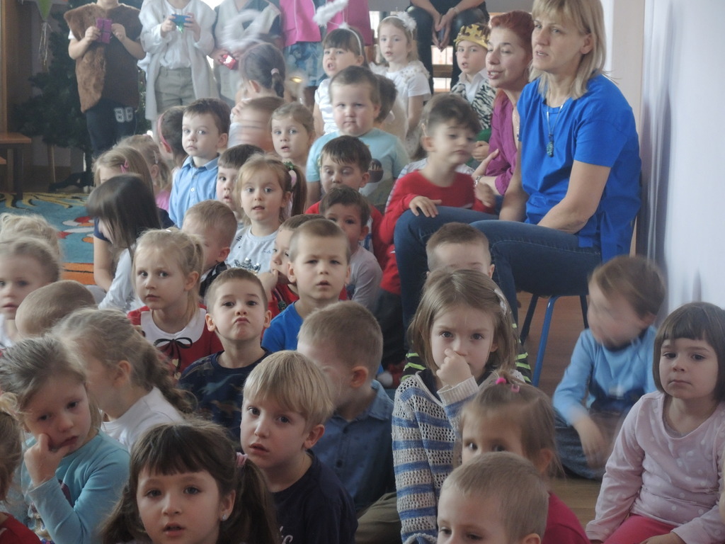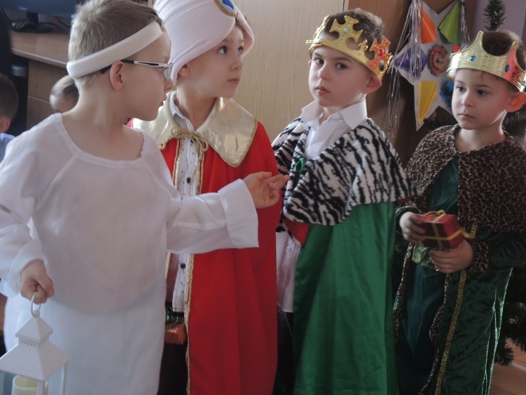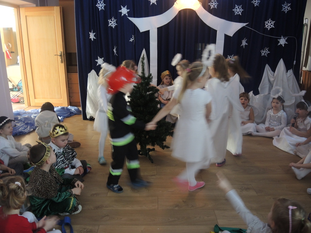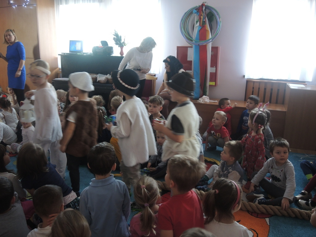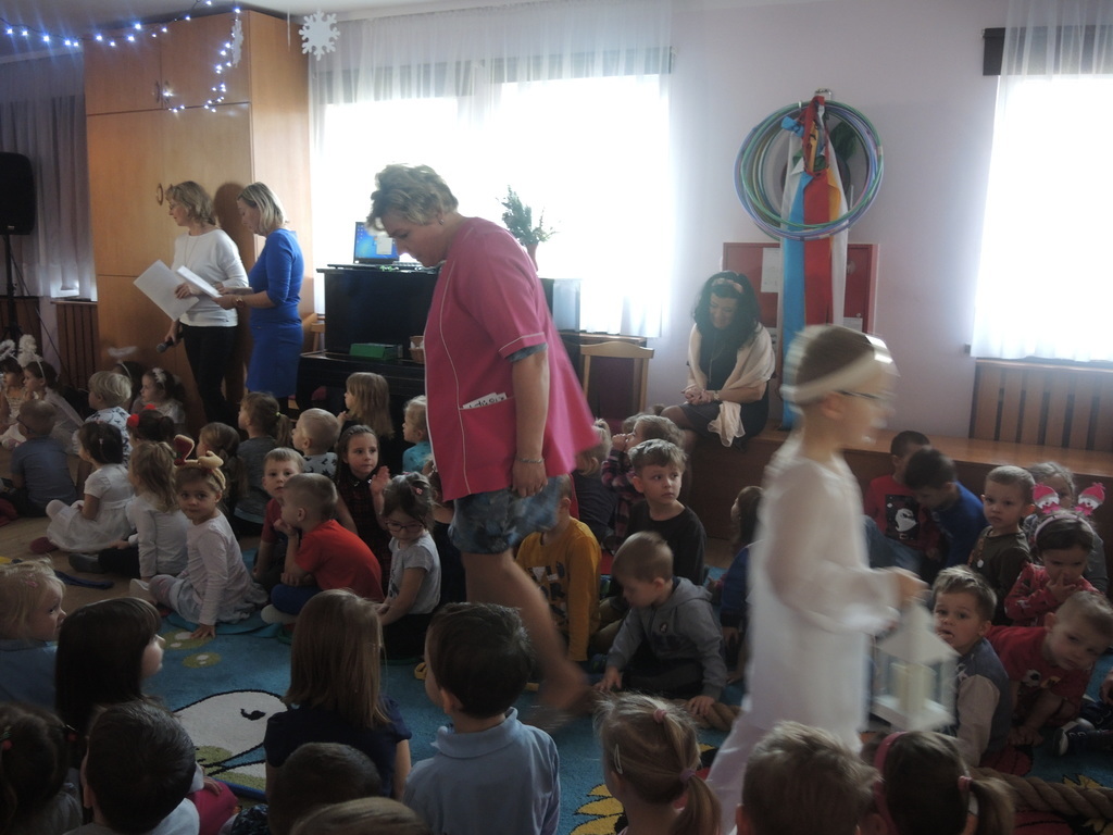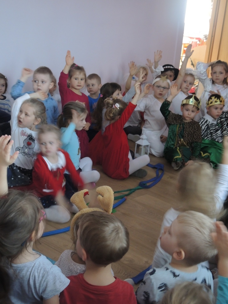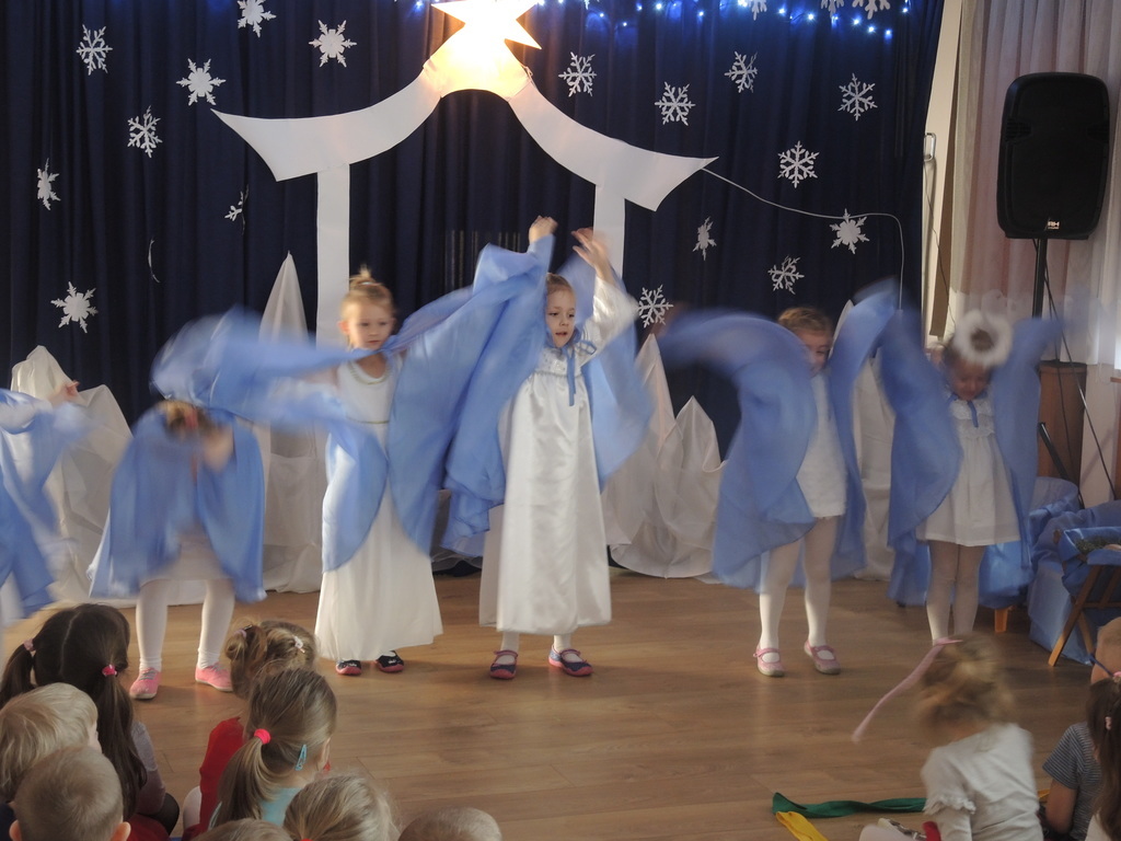 Aby podkreślić wyjątkowy charakter tych świąt, już tradycyjnie jak co roku w naszym przedszkolu odbyły się jasełka w wykonaniu dzieci z grupy Smerfy. Przedszkolaki w przygotowanych kostiumach oraz w scenografii nawiązującej do Betlejem przedstawiły sceny narodzin Jezusa Chrystusa. Wśród śpiewu aniołów do żłóbka przybyli rozradowani i pełni werwy pastuszkowie. Nowo narodzonemu Dzieciątku, pokłony złożyli także Królowie. Inscenizacja przeplatana była pięknymi kolędami i pastorałkami.