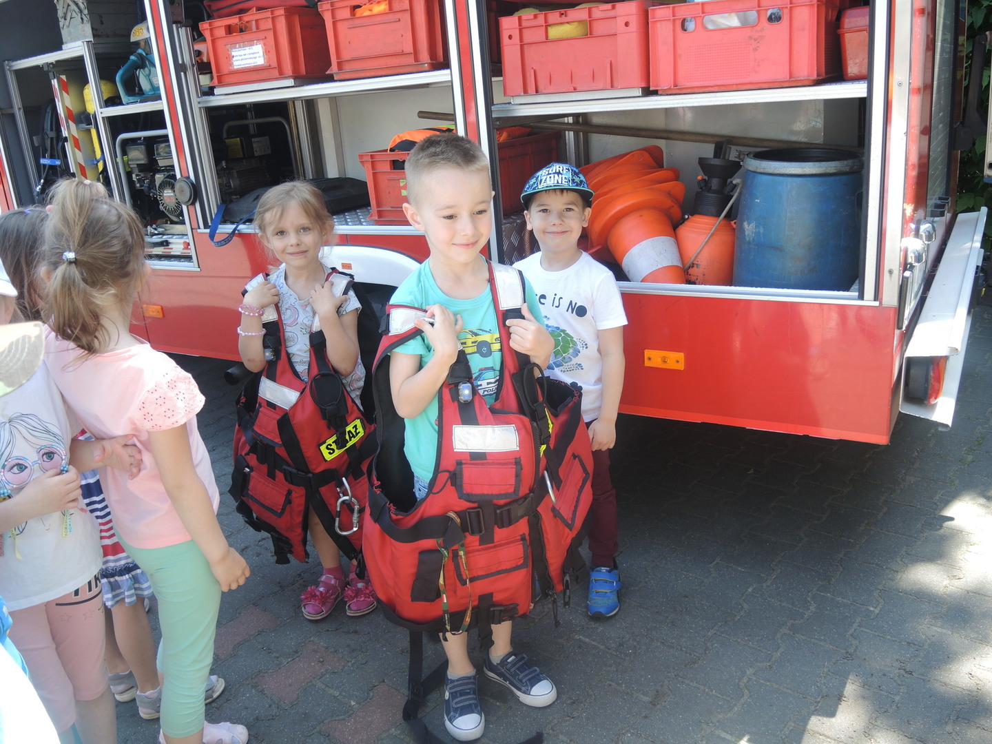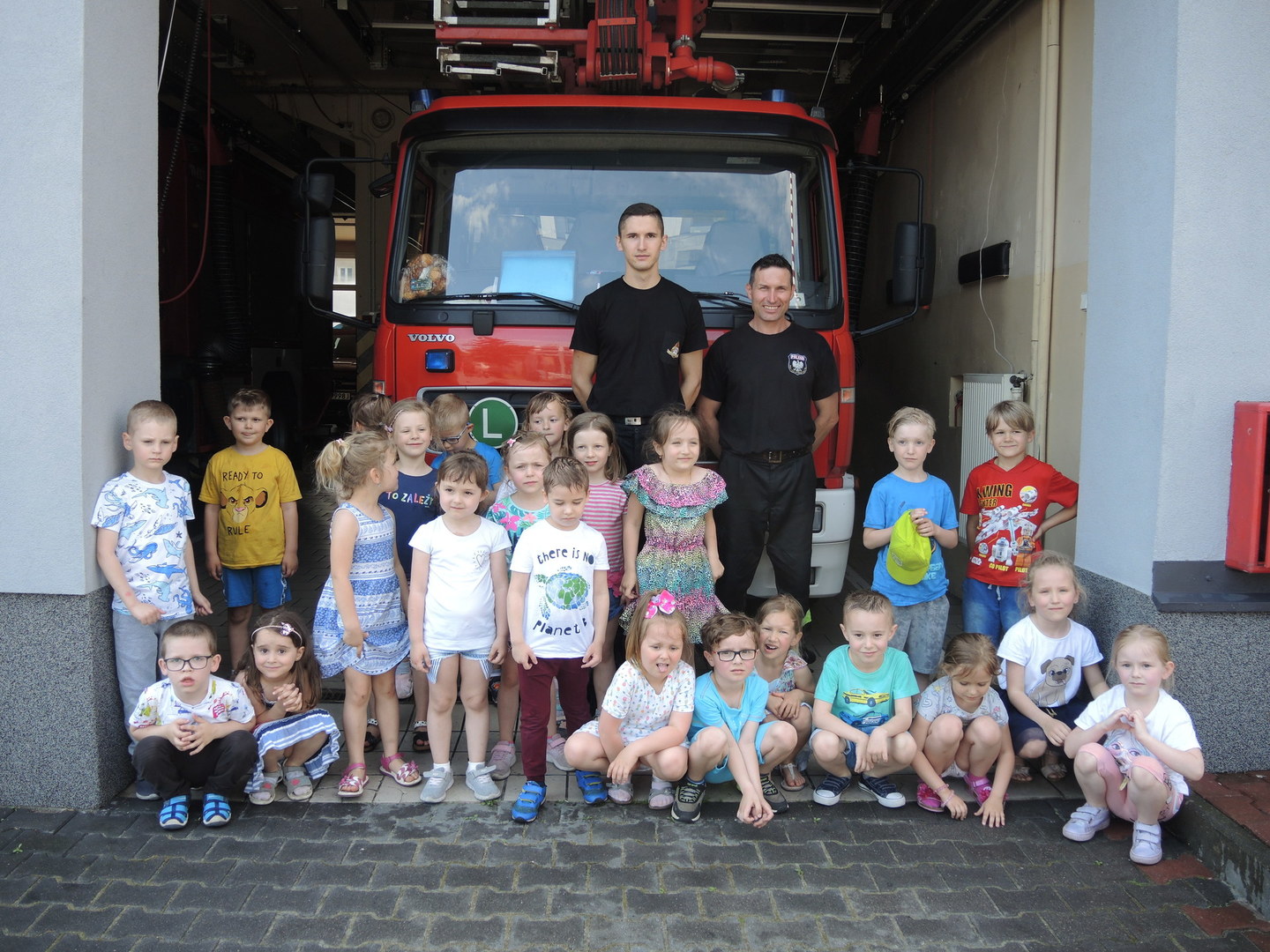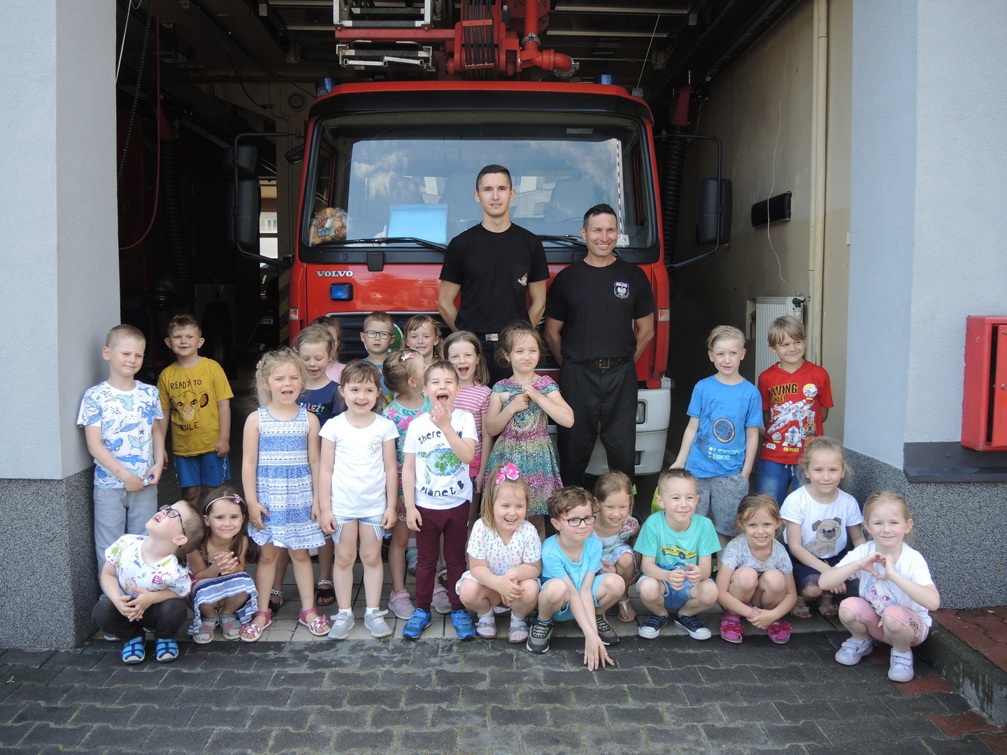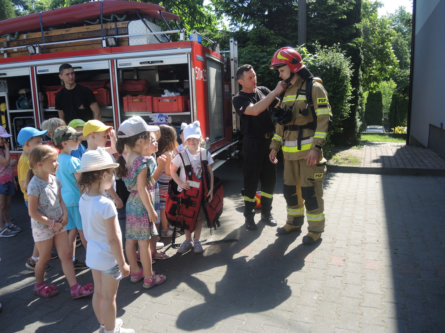 9 czerwca dzieci z gr. Pszczółki wybrały się na wycieczkę do Państwowej Straży Pożarnej. Jak zawsze największe zainteresowanie wzbudziły garaże i wozy strażackie. Dzieci mogły je z bliska oglądać oraz podziwiać wyposażenie, jakim dysponują strażacy podczas swojej ciężkiej i odpowiedzialnej pracy. Mogły przymierzyć stroje i kask strażacki. Zwiedziły również stanowisko kierowania, w którym odbierane są zgłoszenia o pożarach lub wypadkach.