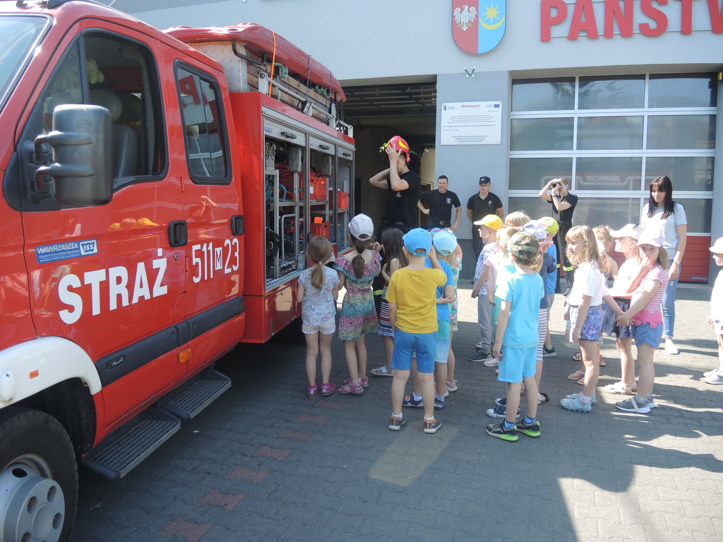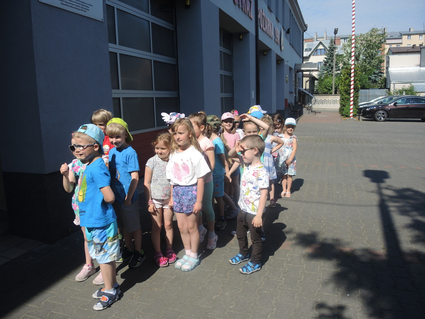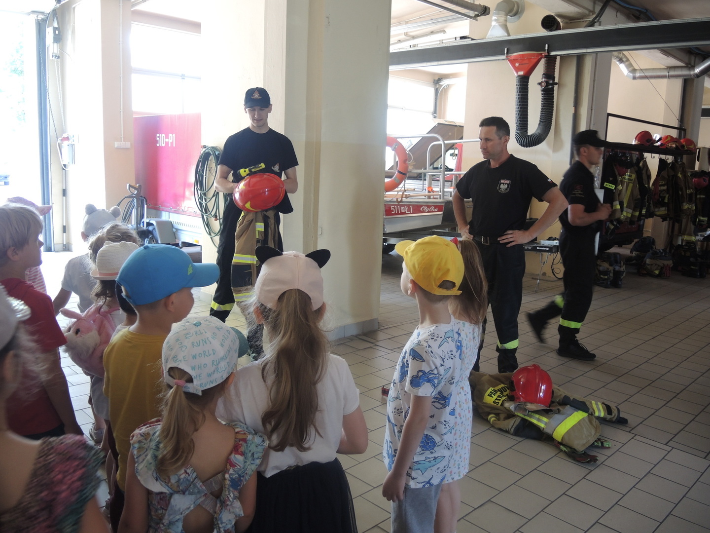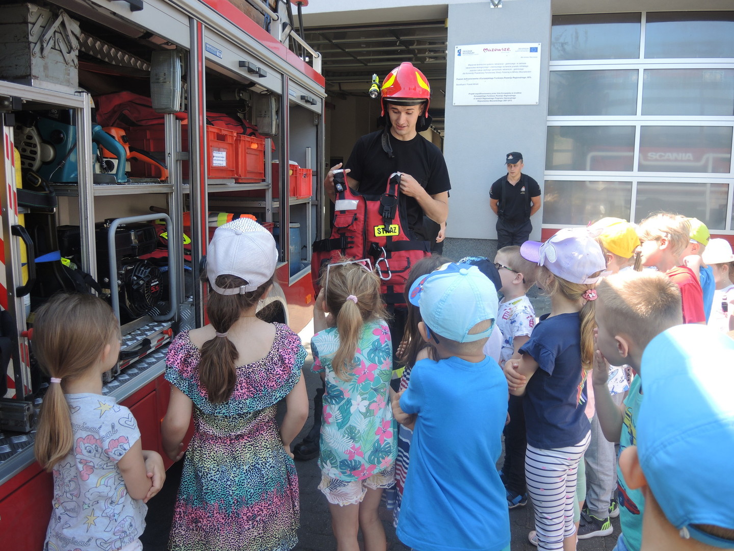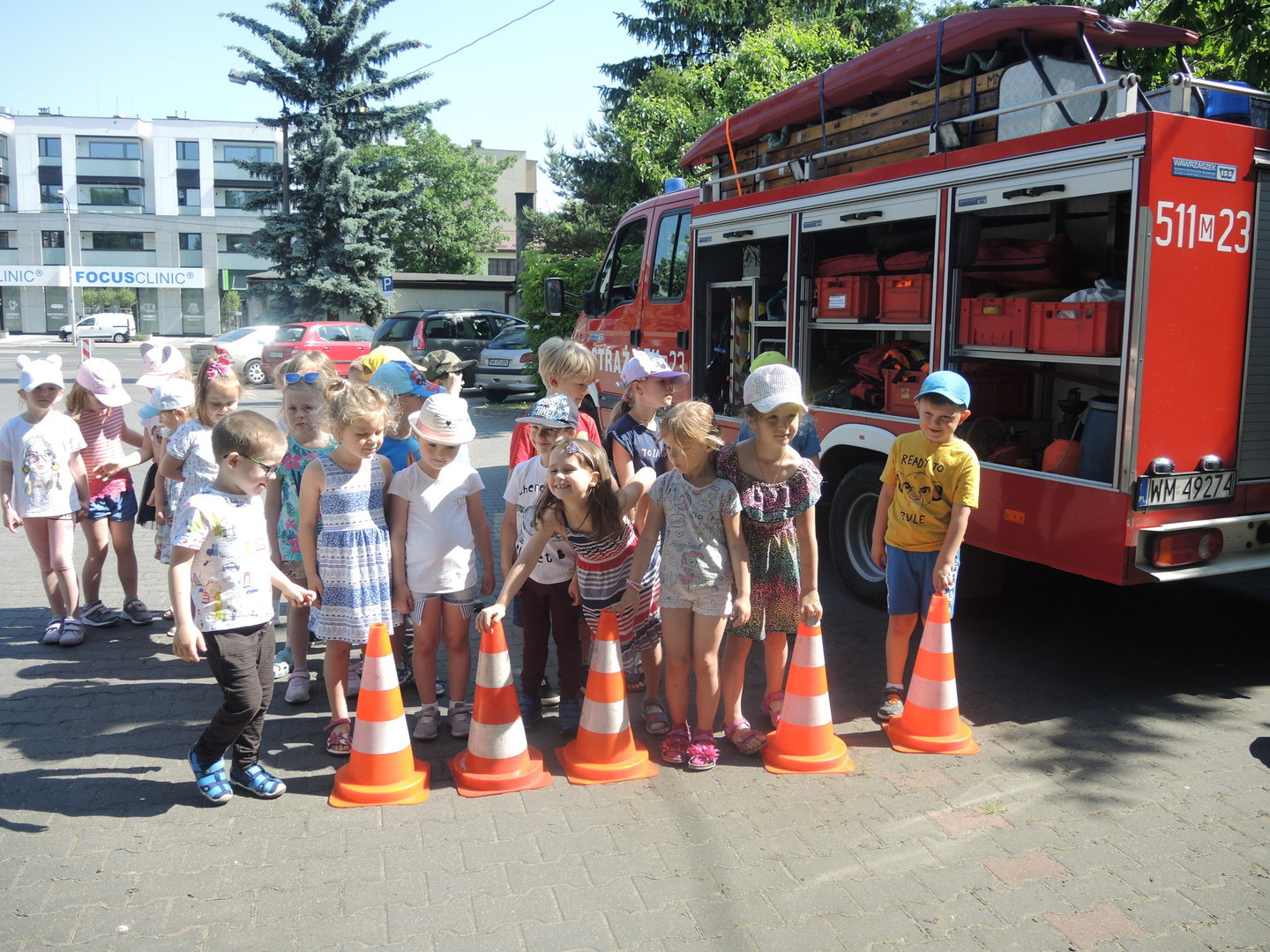 9 czerwca dzieci z gr. Pszczółki wybrały się na wycieczkę do Państwowej Straży Pożarnej. Jak zawsze największe zainteresowanie wzbudziły garaże i wozy strażackie. Dzieci mogły je z bliska oglądać oraz podziwiać wyposażenie, jakim dysponują strażacy podczas swojej ciężkiej i odpowiedzialnej pracy. Mogły przymierzyć stroje i kask strażacki. Zwiedziły również stanowisko kierowania, w którym odbierane są zgłoszenia o pożarach lub wypadkach.