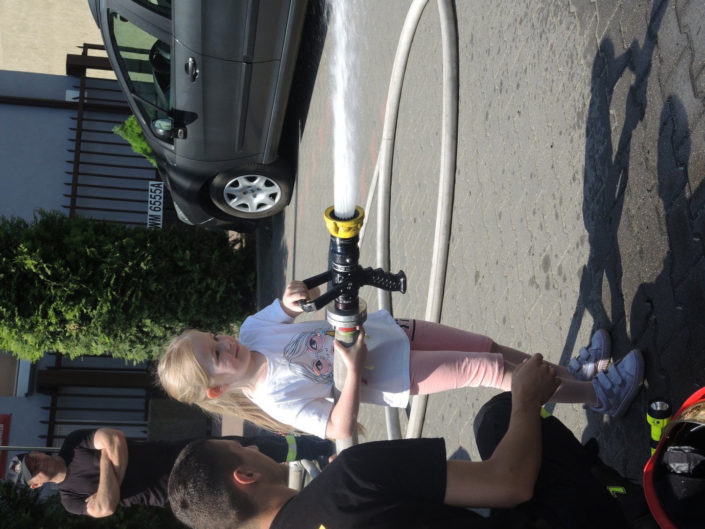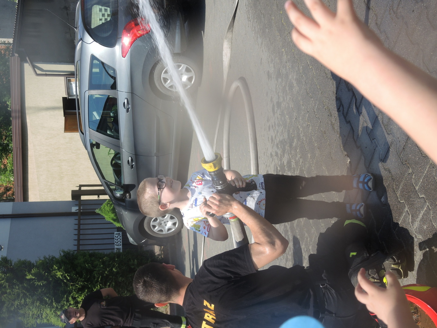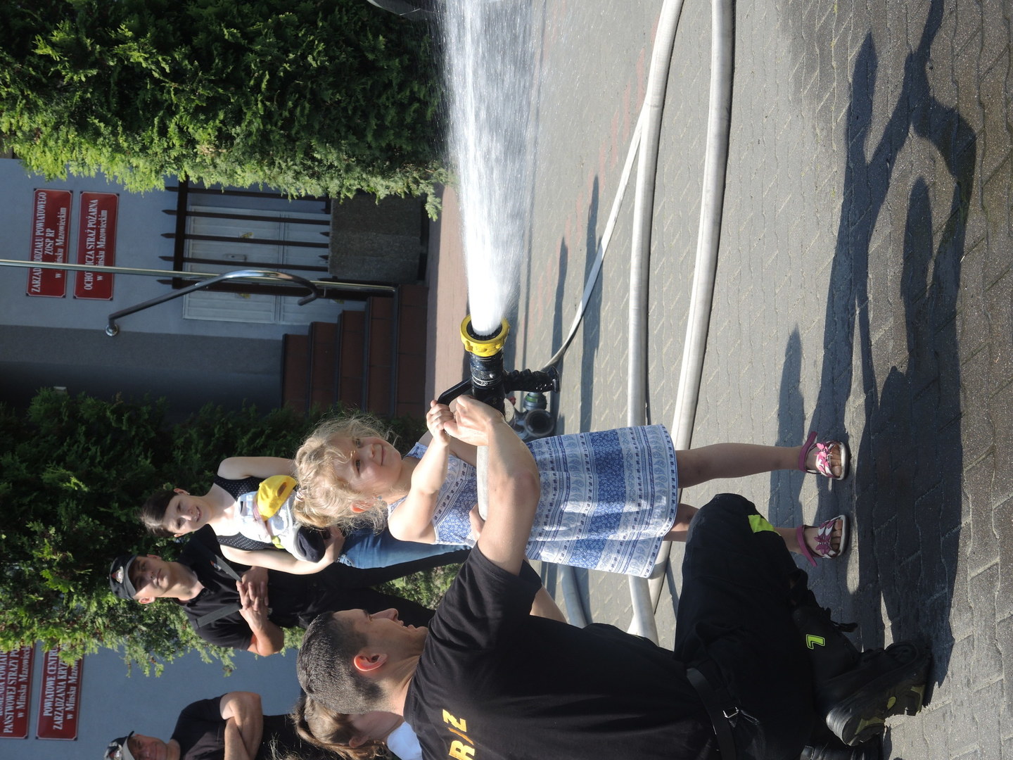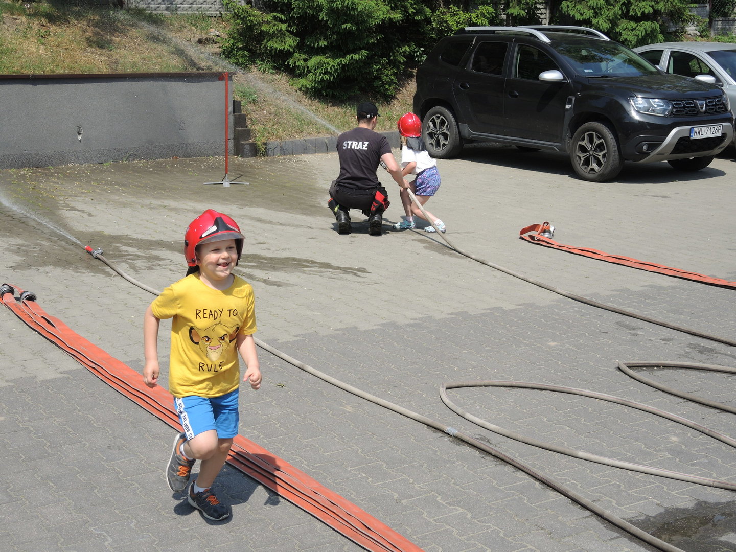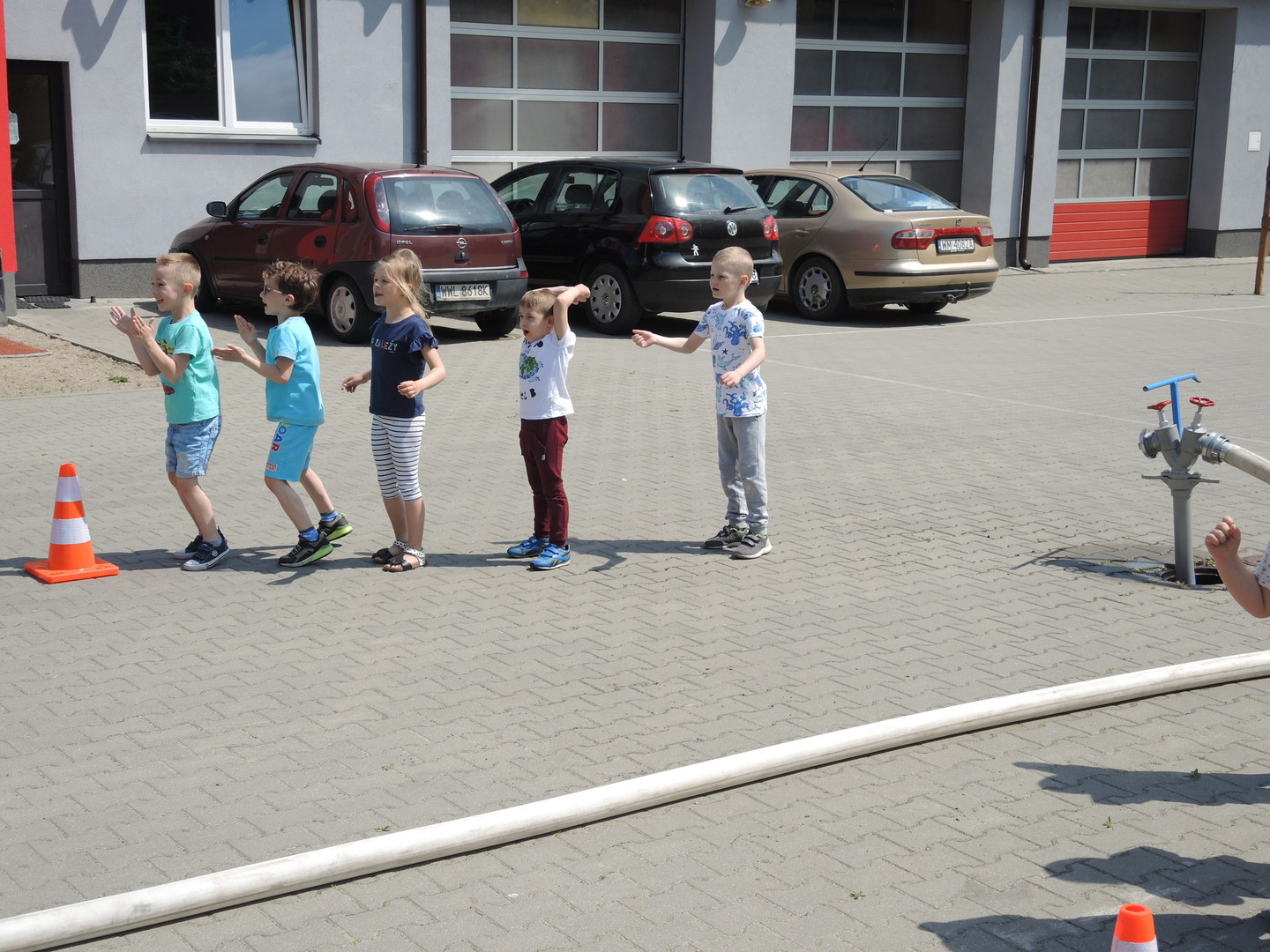 Największą frajdę sprawiło dzieciom lanie wody z węża strażackiego. Radość była ogromna, a że dzień gorący to trochę ochłody się przydało. Na zakończenie przedszkolaki wzięły udział w „zawodach strażackich”, przygotowanych specjalnie dla nich.