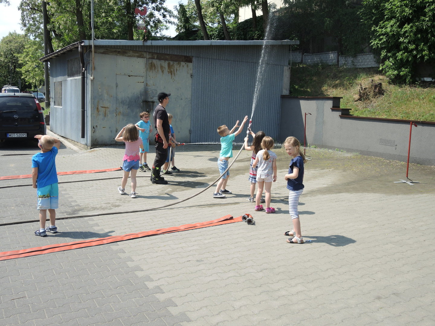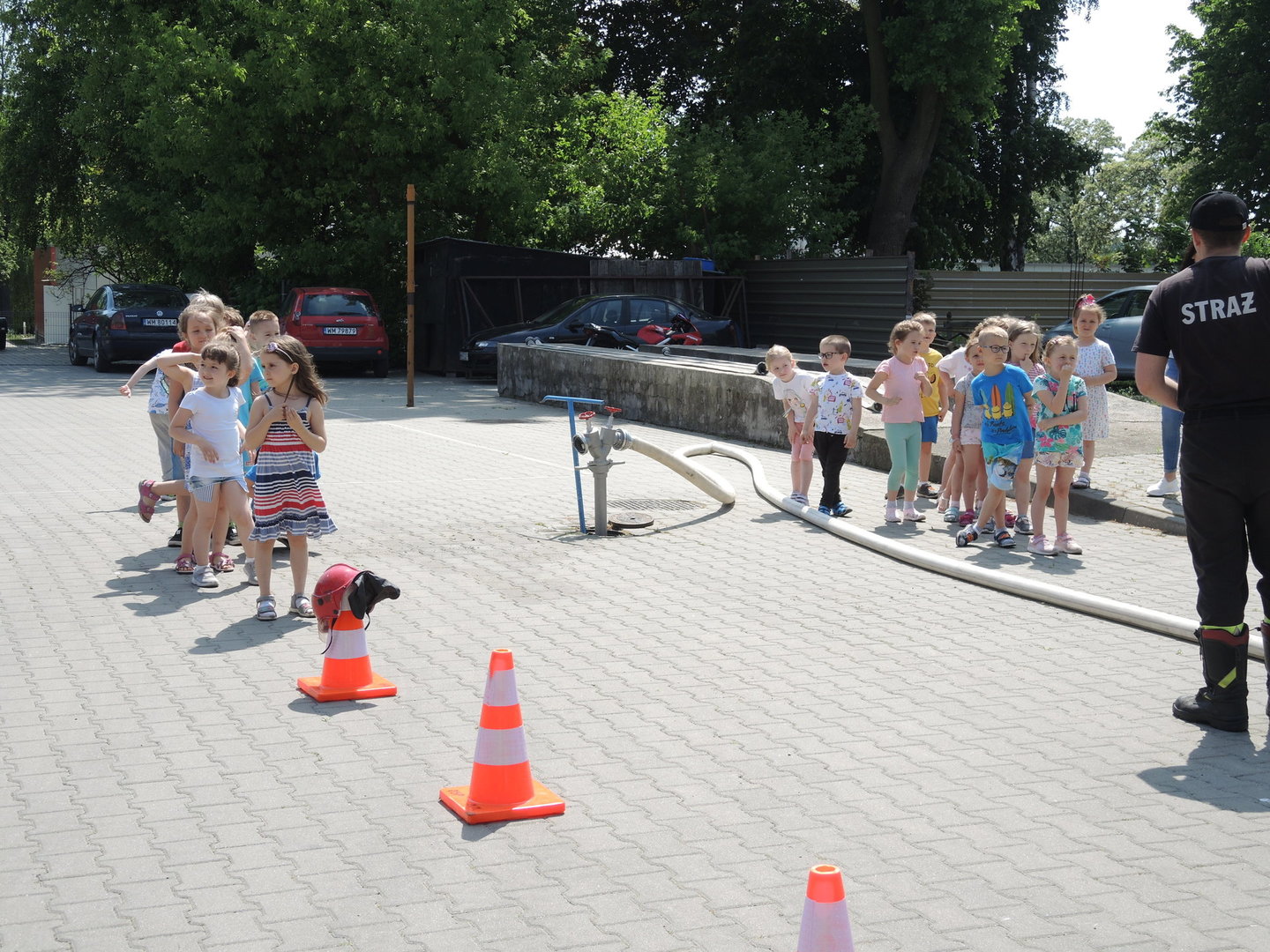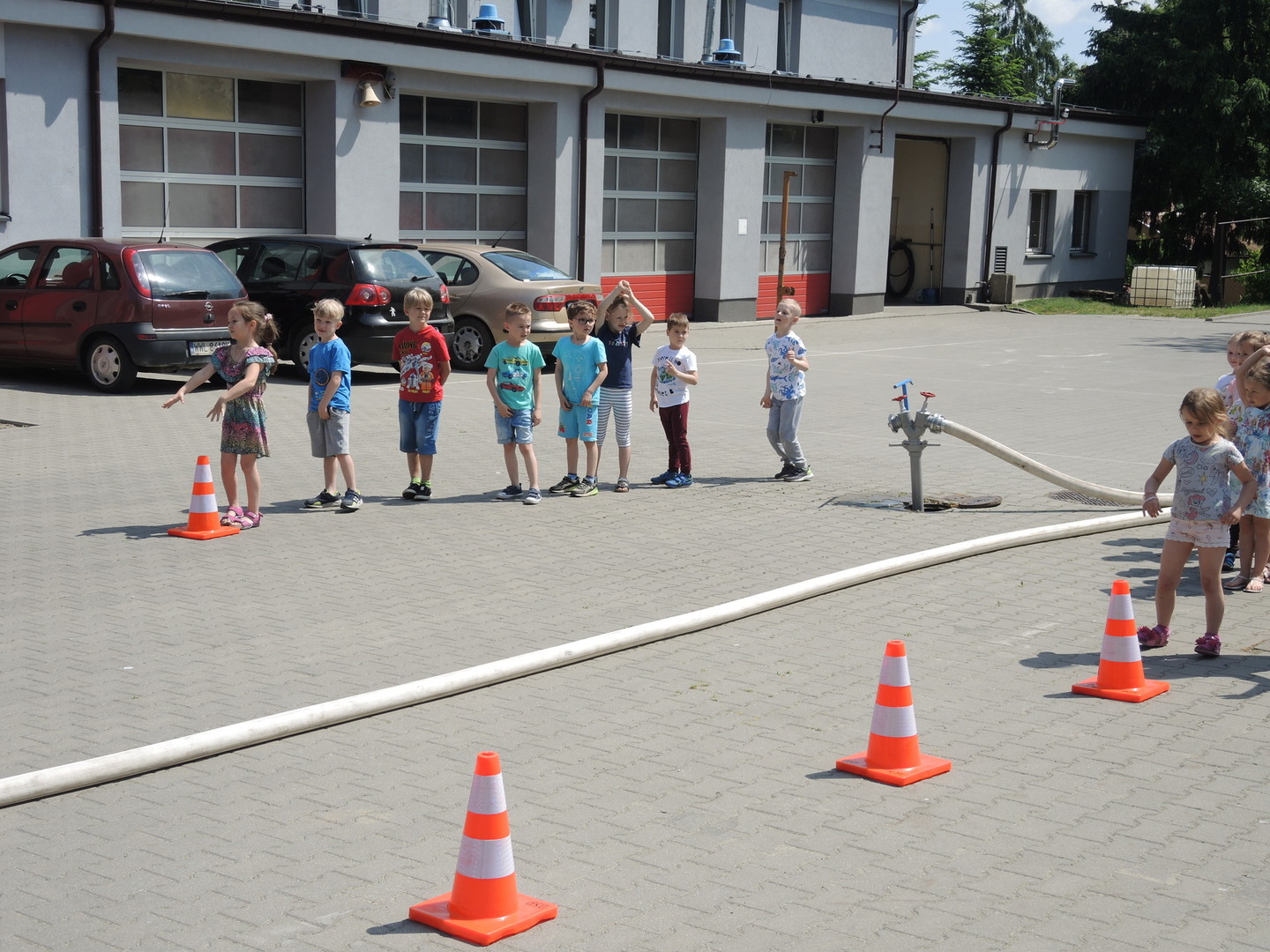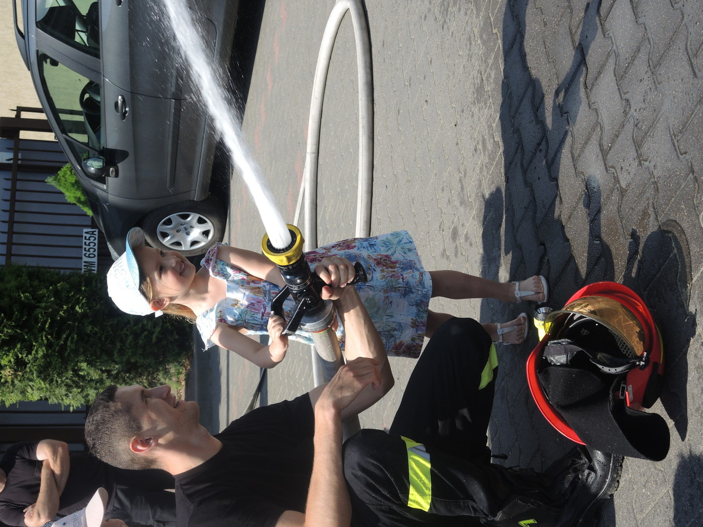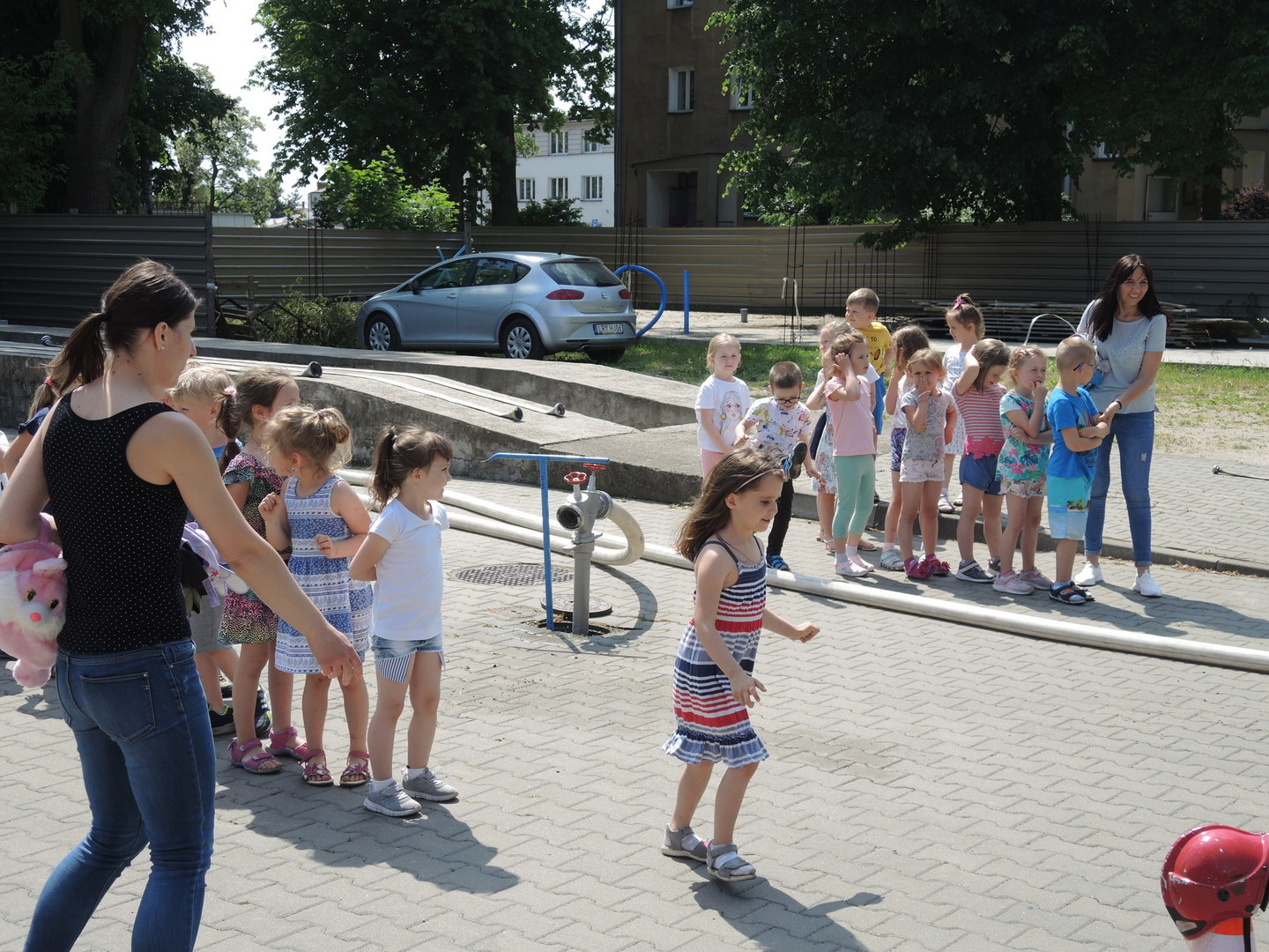 Największą frajdę sprawiło dzieciom lanie wody z węża strażackiego. Radość była ogromna, a że dzień gorący to trochę ochłody się przydało. Na zakończenie przedszkolaki wzięły udział w „zawodach strażackich”, przygotowanych specjalnie dla nich.