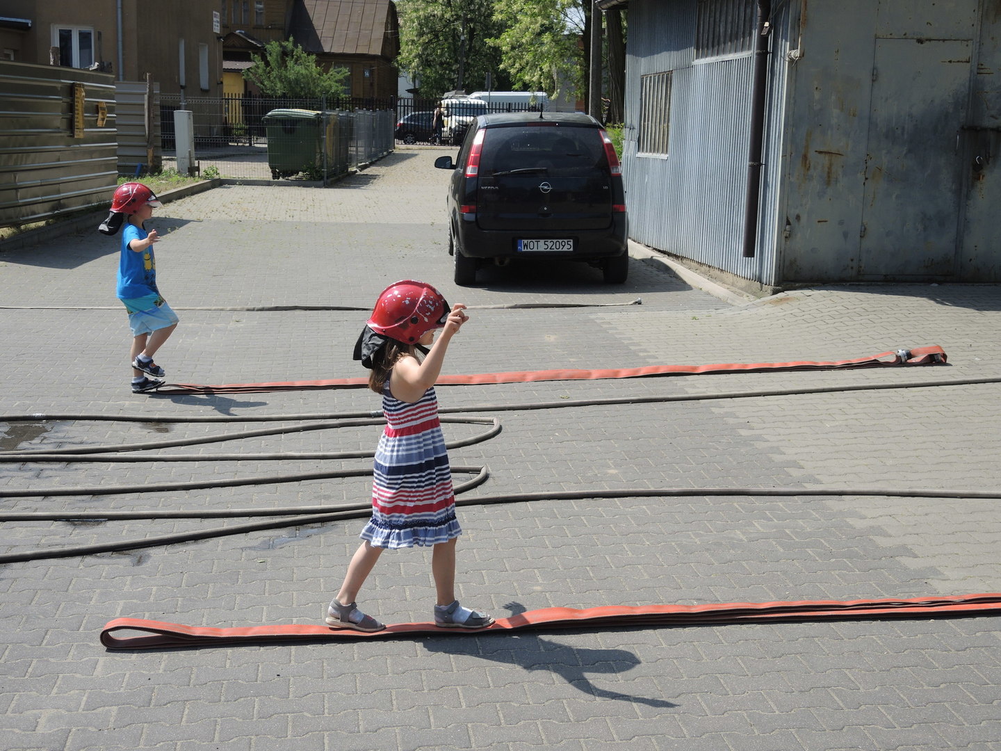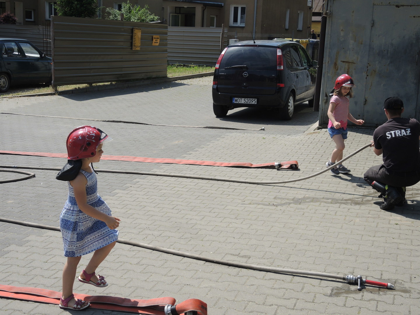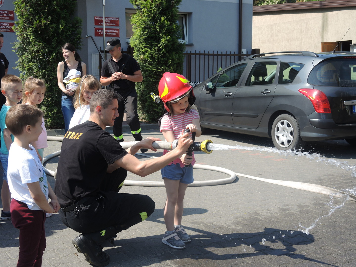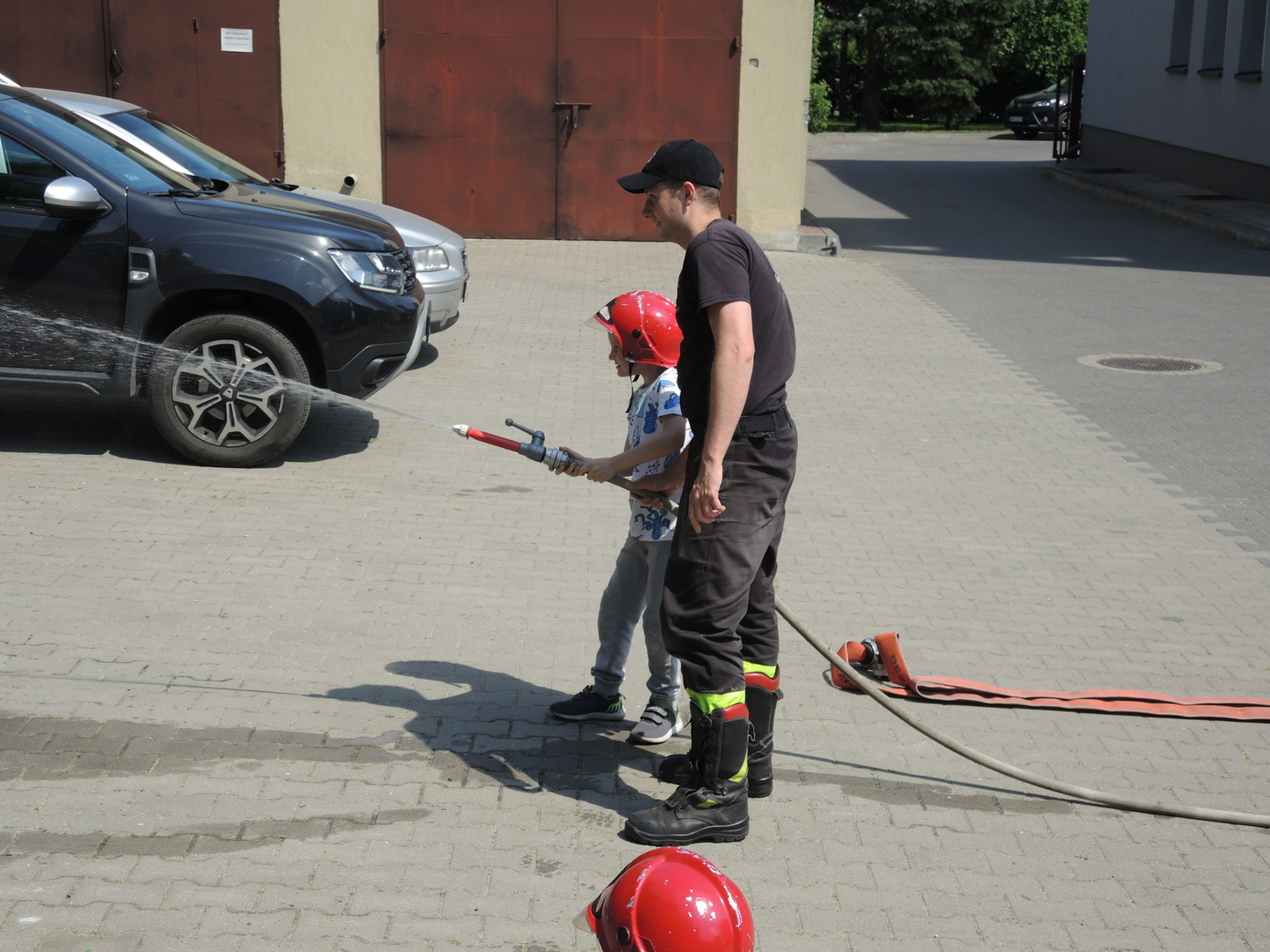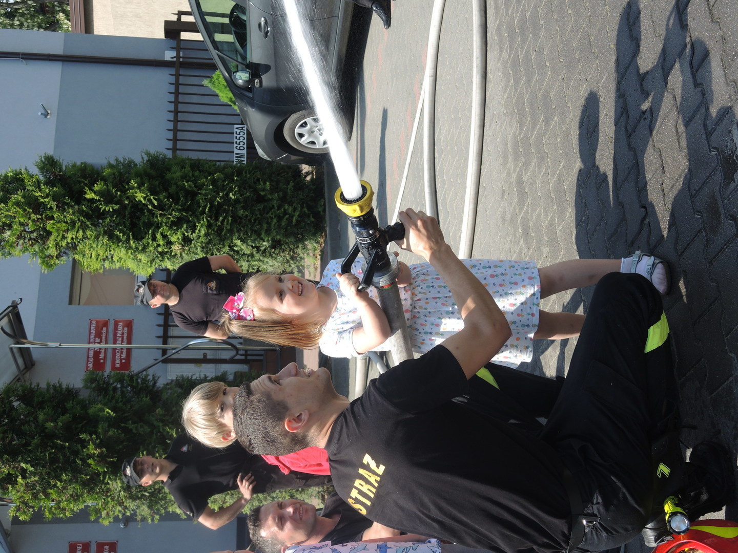 Największą frajdę sprawiło dzieciom lanie wody z węża strażackiego. Radość była ogromna, a że dzień gorący to trochę ochłody się przydało. Na zakończenie przedszkolaki wzięły udział w „zawodach strażackich”, przygotowanych specjalnie dla nich.
