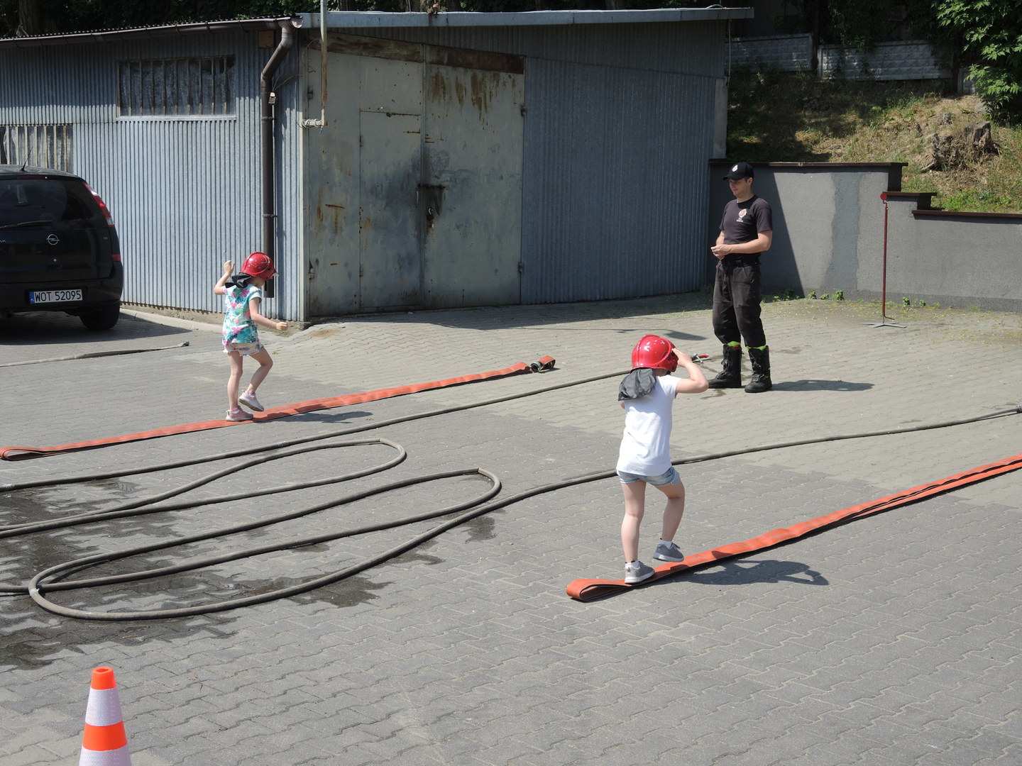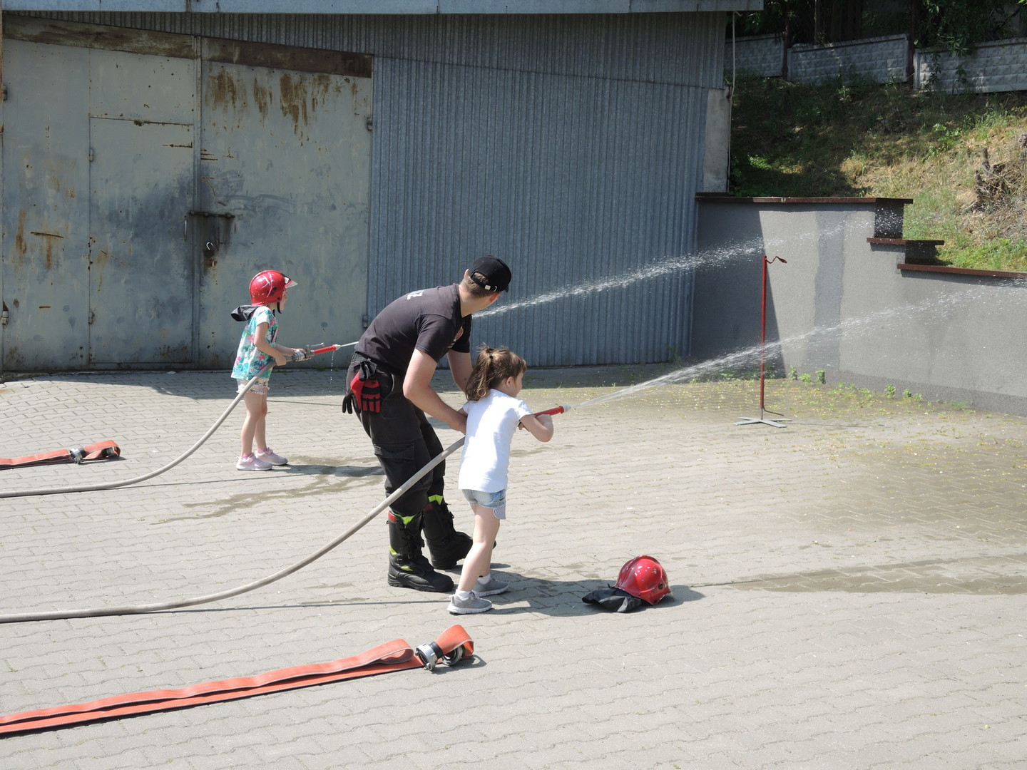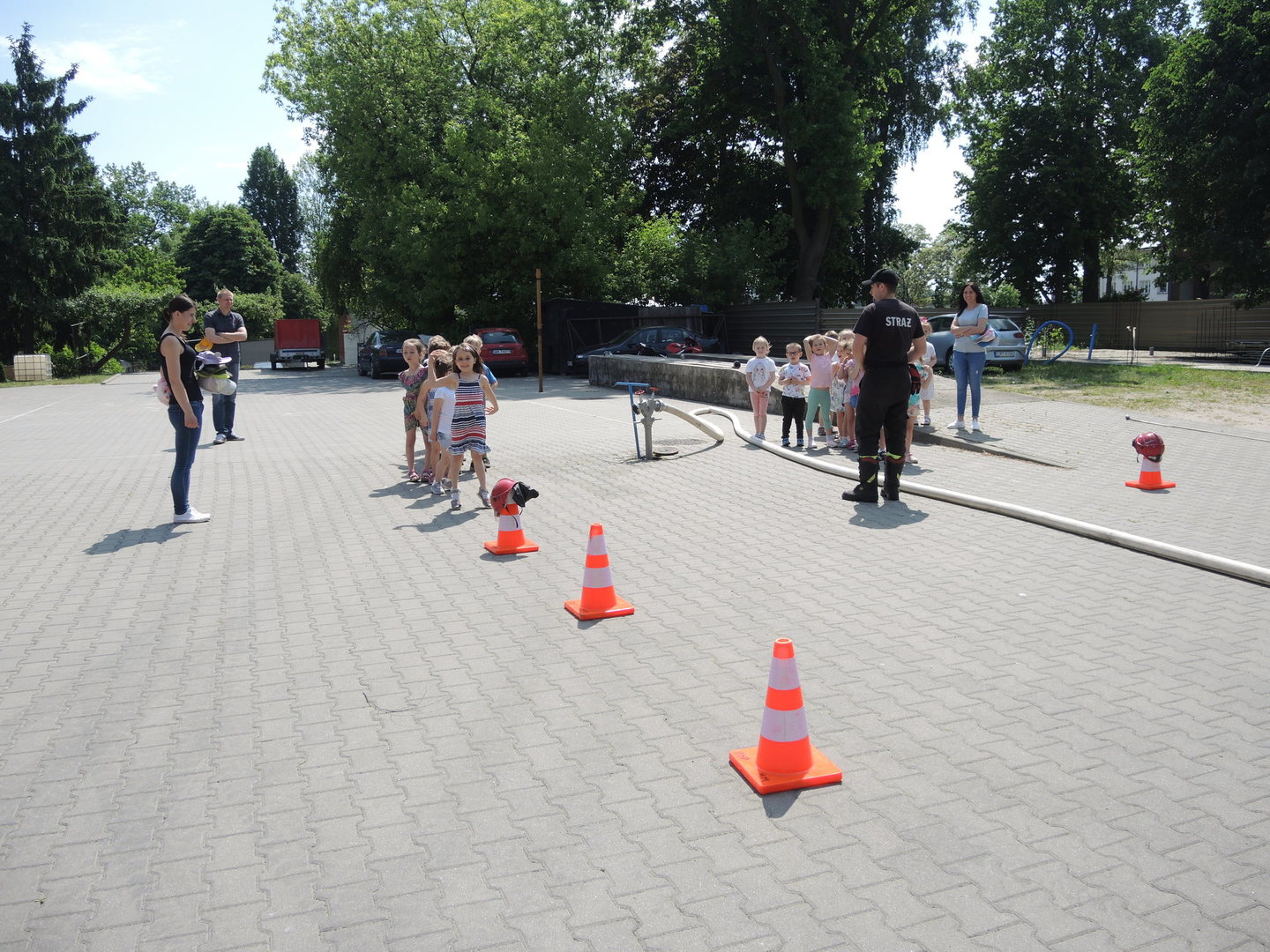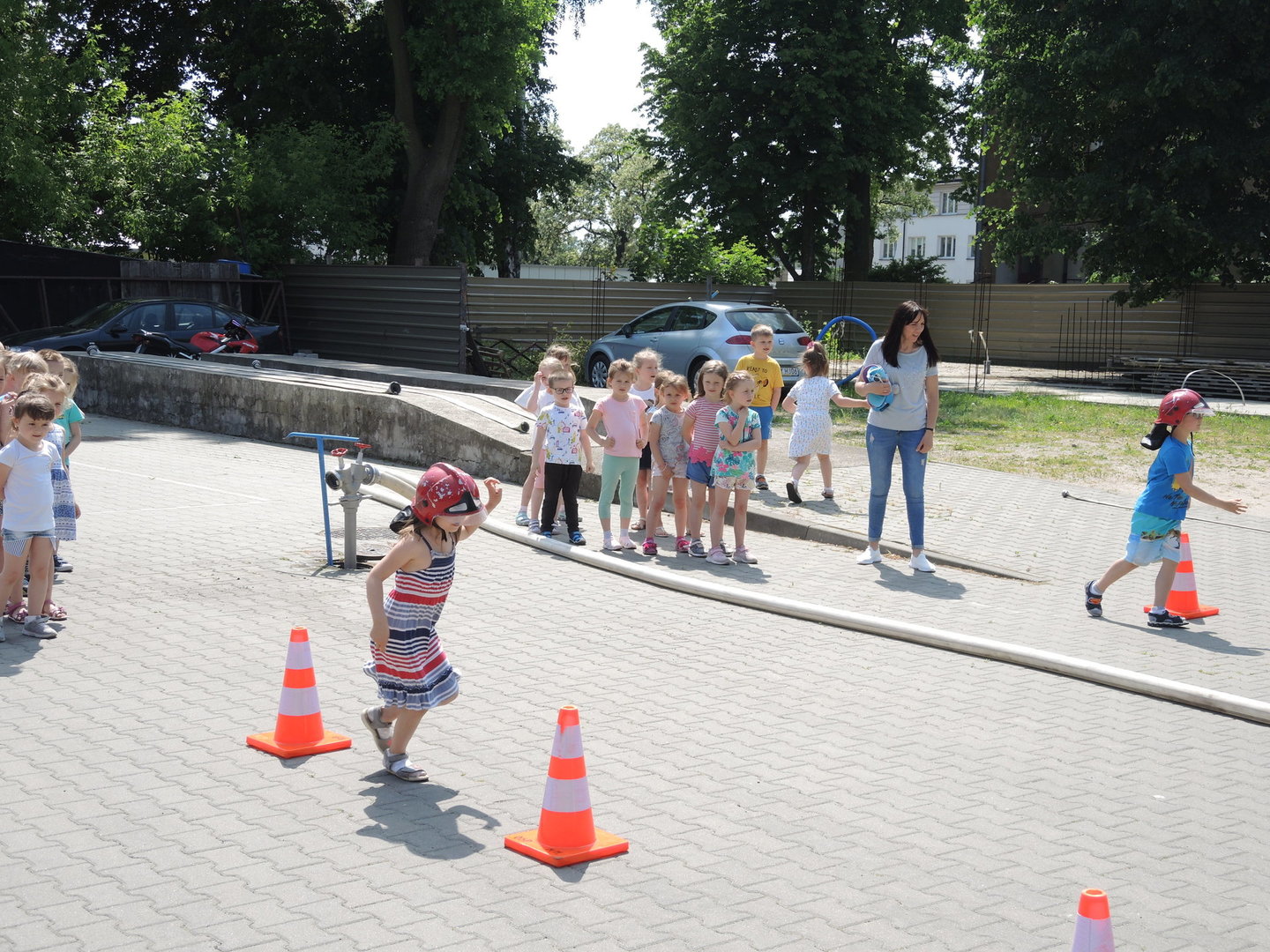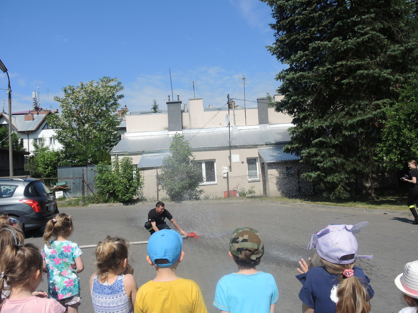 Największą frajdę sprawiło dzieciom lanie wody z węża strażackiego. Radość była ogromna, a że dzień gorący to trochę ochłody się przydało. Na zakończenie przedszkolaki wzięły udział w „zawodach strażackich”, przygotowanych specjalnie dla nich.