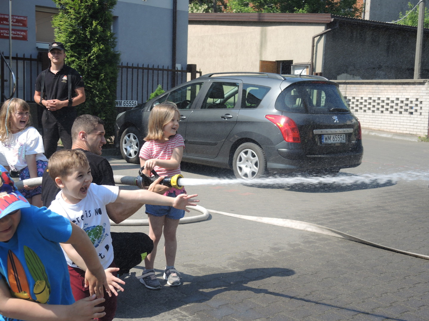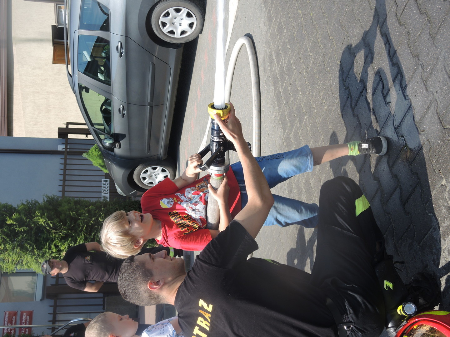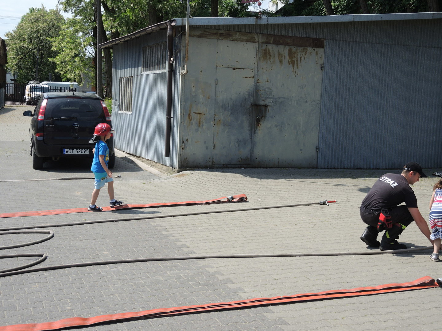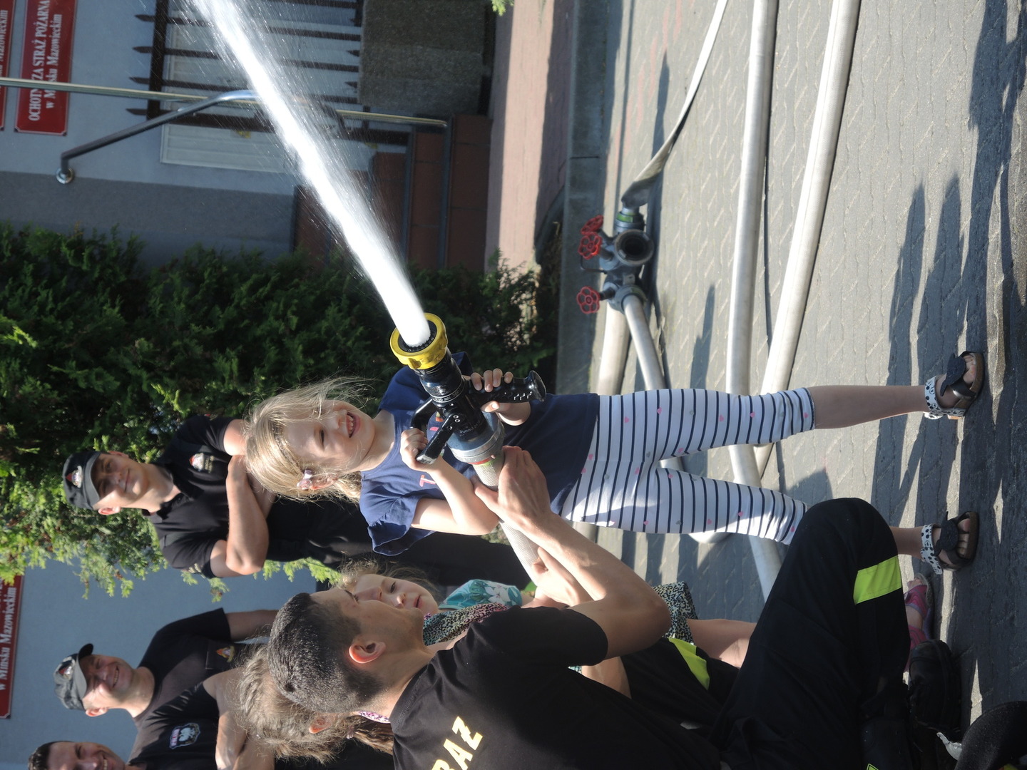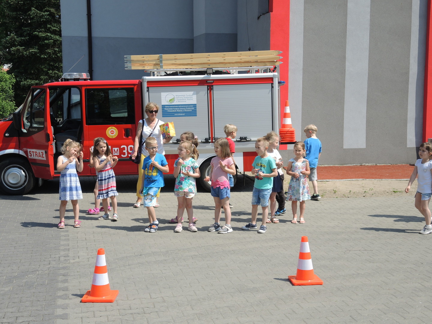 Największą frajdę sprawiło dzieciom lanie wody z węża strażackiego. Radość była ogromna, a że dzień gorący to trochę ochłody się przydało. Na zakończenie przedszkolaki wzięły udział w „zawodach strażackich”, przygotowanych specjalnie dla nich.