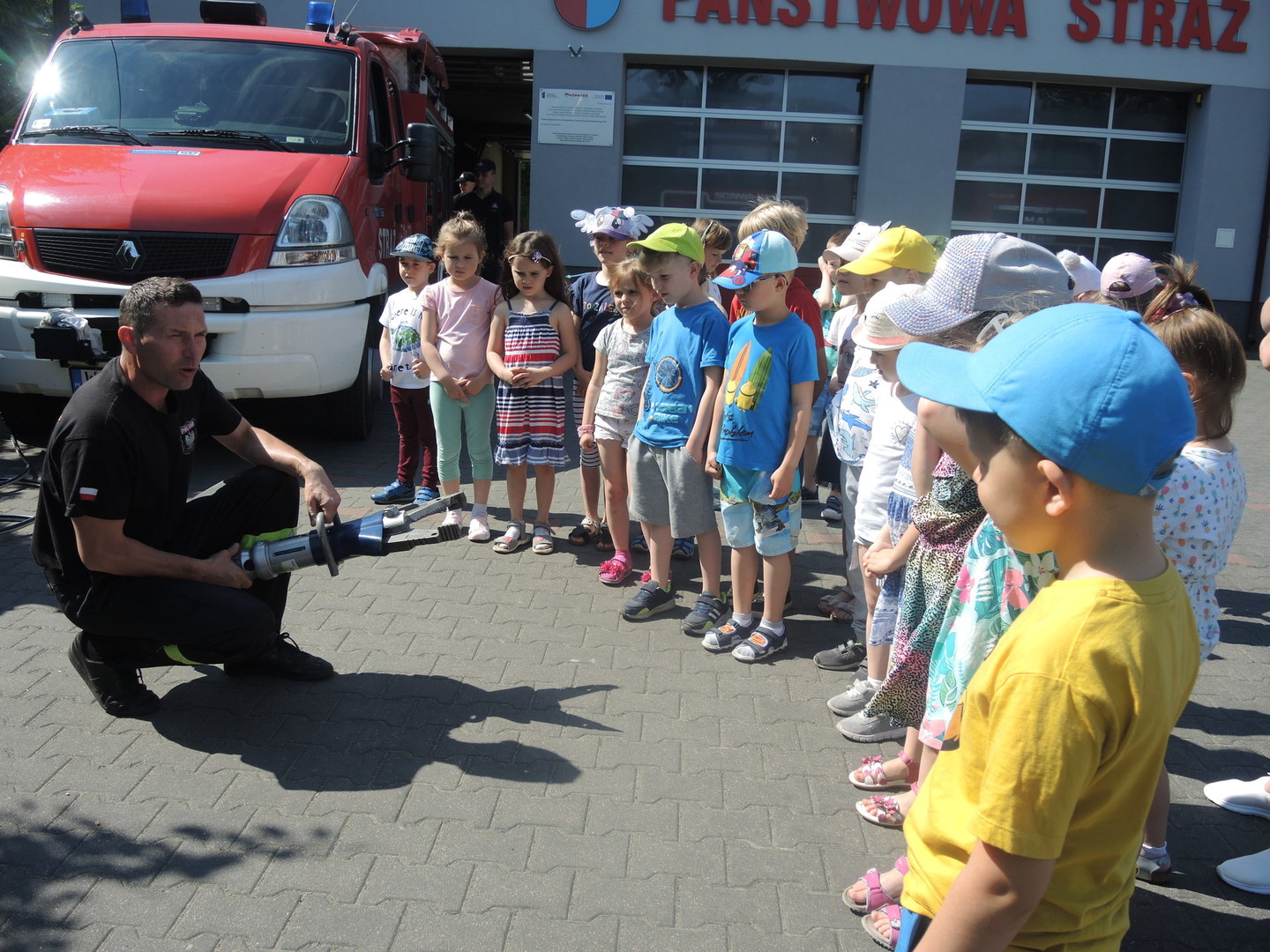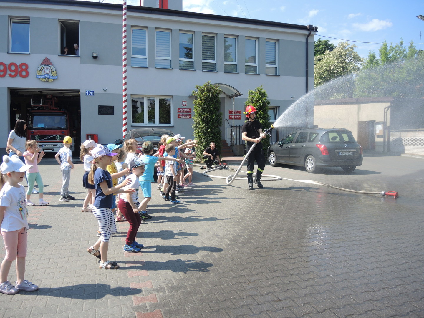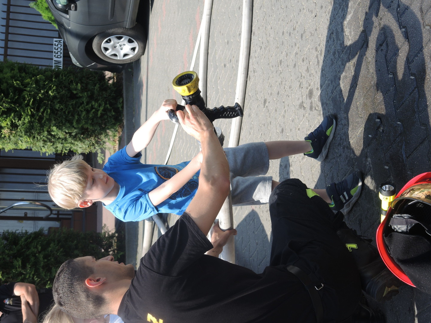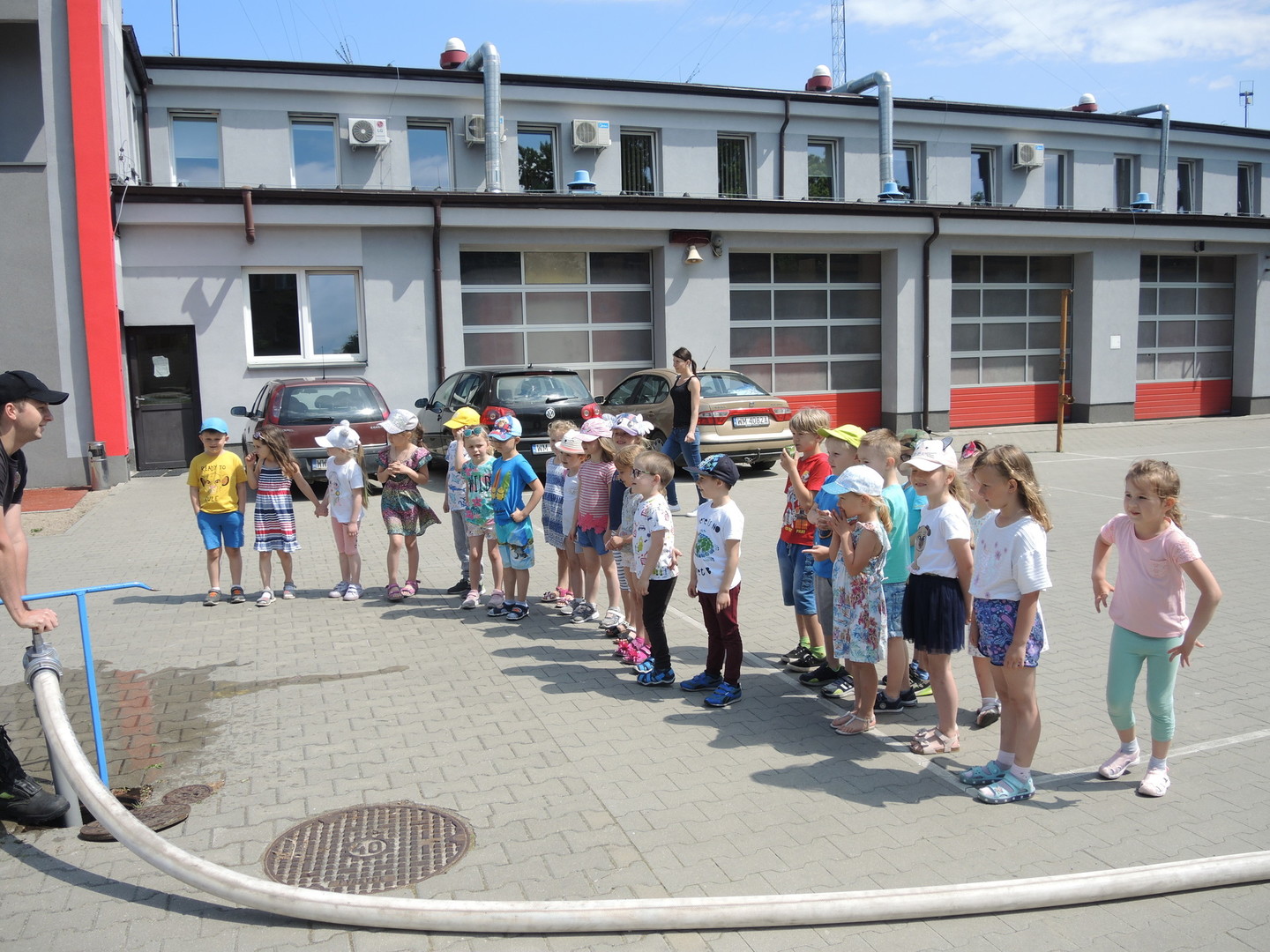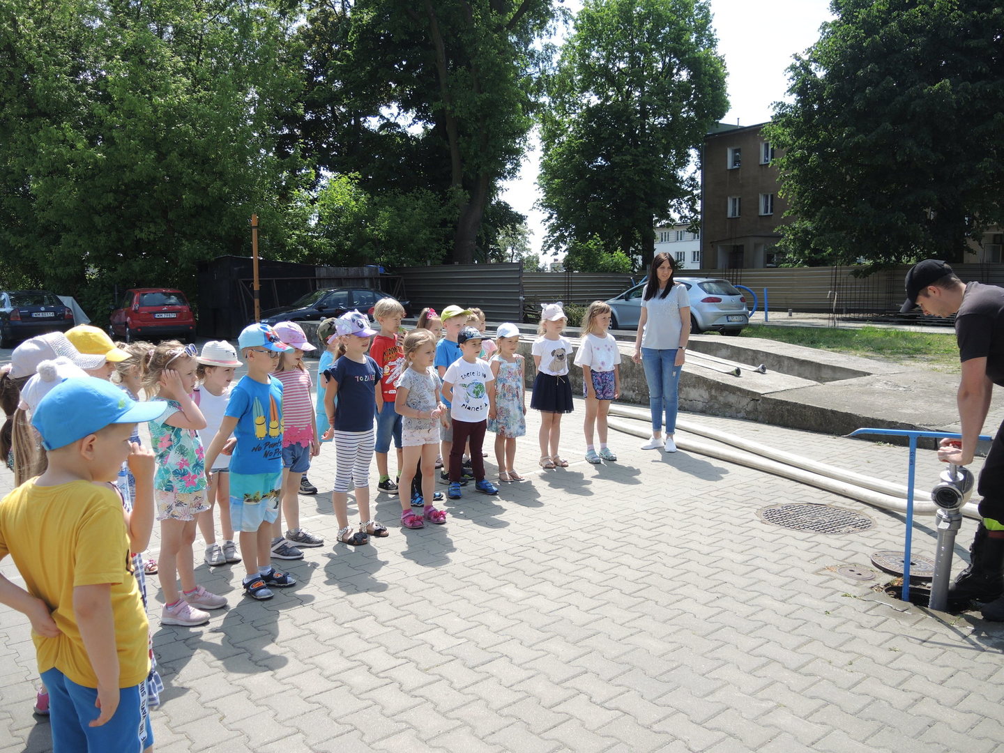 Największą frajdę sprawiło dzieciom lanie wody z węża strażackiego. Radość była ogromna, a że dzień gorący to trochę ochłody się przydało. Na zakończenie przedszkolaki wzięły udział w „zawodach strażackich”, przygotowanych specjalnie dla nich.